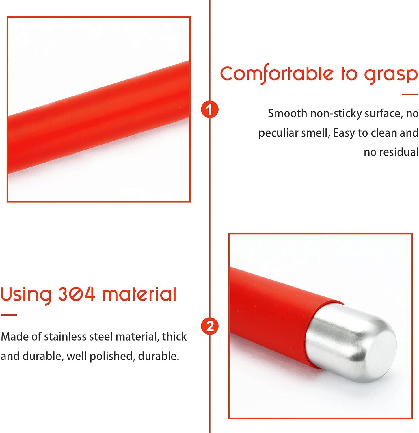 - [Multiple choices&High Quality]:Remeel rolling pin provides blue, green, orange and red for options. With seamless 304 stainless steel structure, it is built to last. You can use it for a long time without any extra maintenance except cleaning with fresh water.
