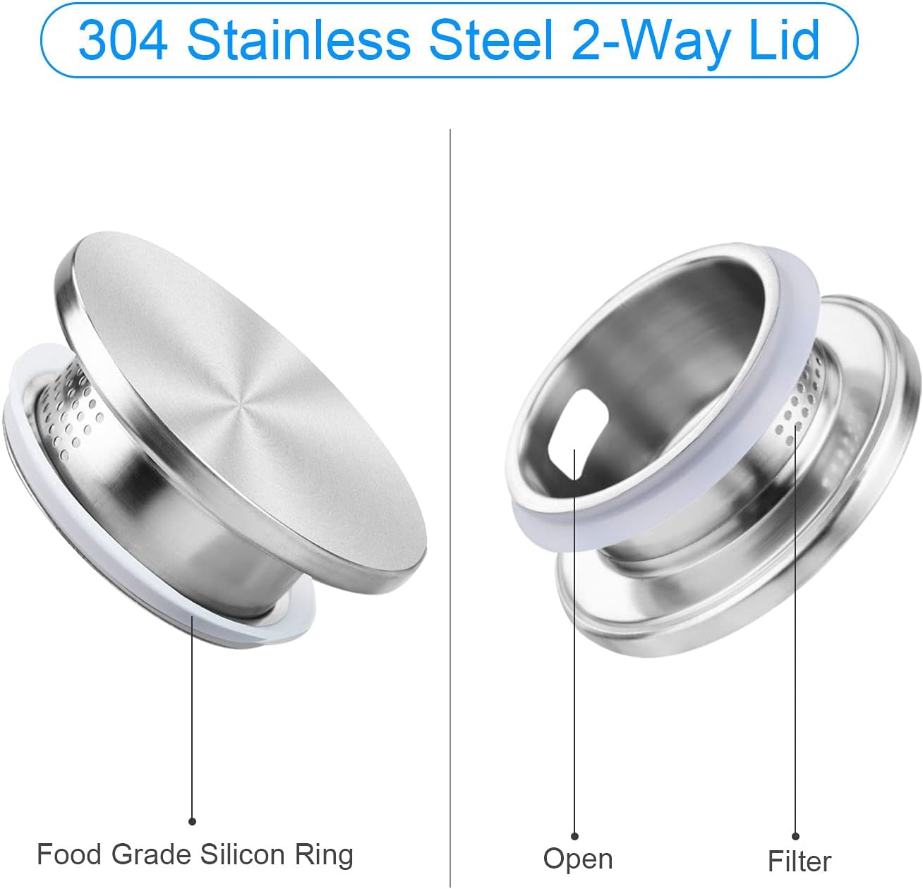 - Functional rust-proof stainless-steel lid: 304 stainless steel lid features 2-way outlets with large holes and small holes for filtration. It’s quite multi-functional for family use. The food-grade rubber ring makes sure the lid is tight and does not fall off while pouring.