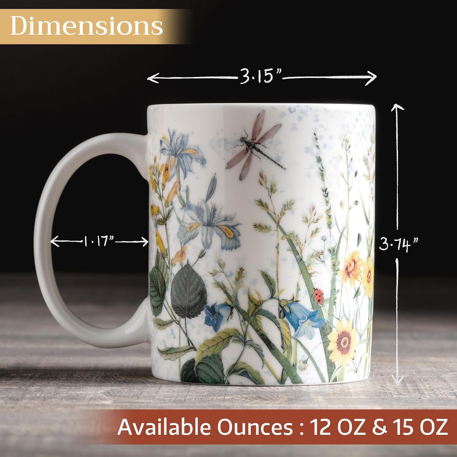 Maison d' Hermine Coffee Mug with Handles Fine Bone China Mugs Pack of One Tea Cups for Hot Beverages Cappuccino Latte Home Restaurant Office Perfect for Gift (Fleurs De Mai - Prairie, 12 Ounce)