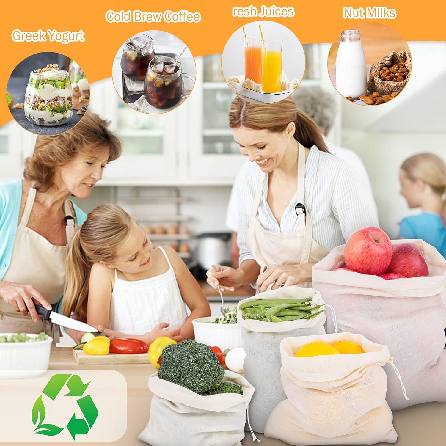 - 【DRAWSTRING DESIGN & EASY TO USE】These cheesecloth bags are designed with the optimal size (10" x 12") for making nut milk, with a drawstring are very convenient to straining and squzeeing, prevent pulp overflowing out. The cloth is durable and tear-resistant. They are all washable and can be reused again and again. Sewn-in the top of the bag is a drawstring that can be pulled to tighten and close the bag. Ensure each bag is washed prior to first-time use.
