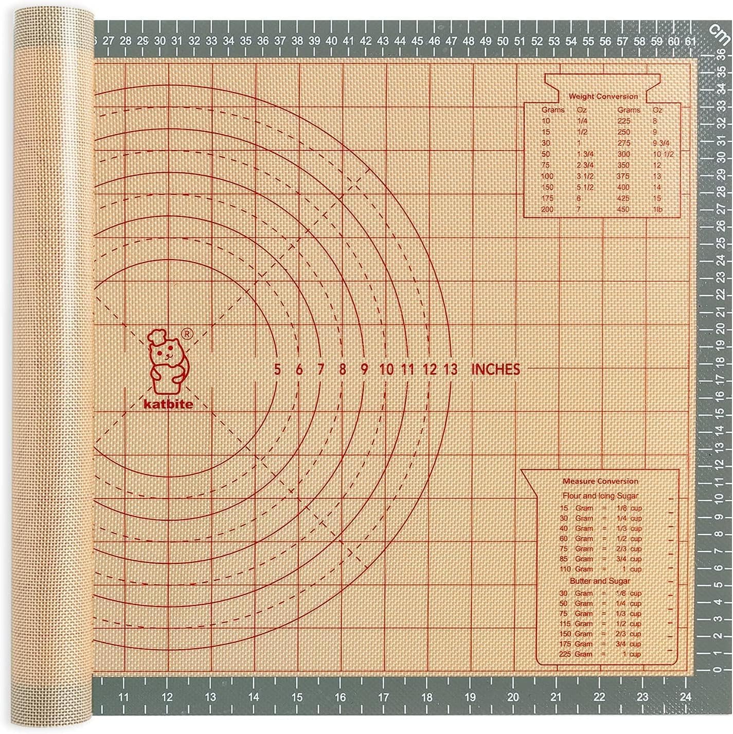 katbite Silicone Pastry Mat Non Stick, Silicone Baking Mat 26" x 16" with Measurement, Non-Slip Dough Rolling Mat for Counter, Oven Liner, Pie Crust, Reusable Fondant Mat Extra Thick
