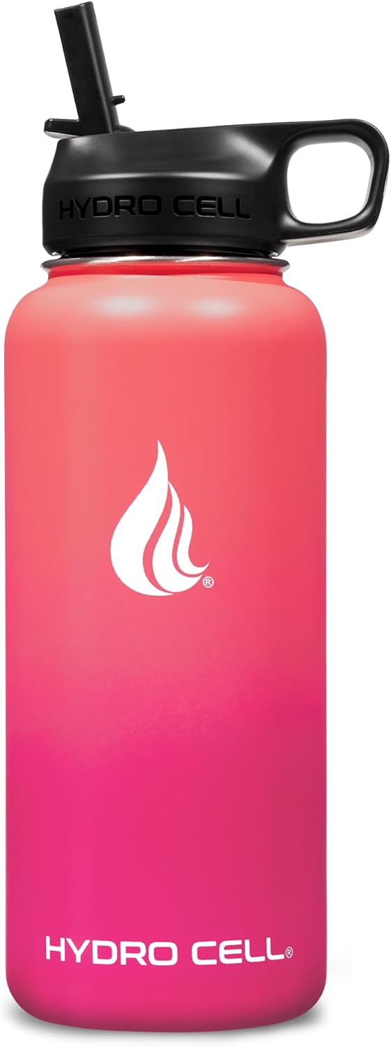 HYDRO CELL Stainless Steel Insulated Water Bottle with Straw - For Cold & Hot Drinks - Metal Vacuum Flask with Screw Cap and Modern Leakproof Sport Thermos for Adults (Coral/Punch 32oz)