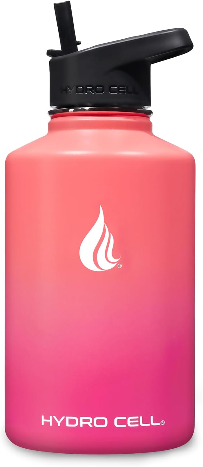 HYDRO CELL Stainless Steel Insulated Water Bottle with Straw - For Cold & Hot Drinks - Metal Vacuum Flask with Screw Cap and Modern Leakproof Sport Thermos for Adults (Coral/Punch 64oz)