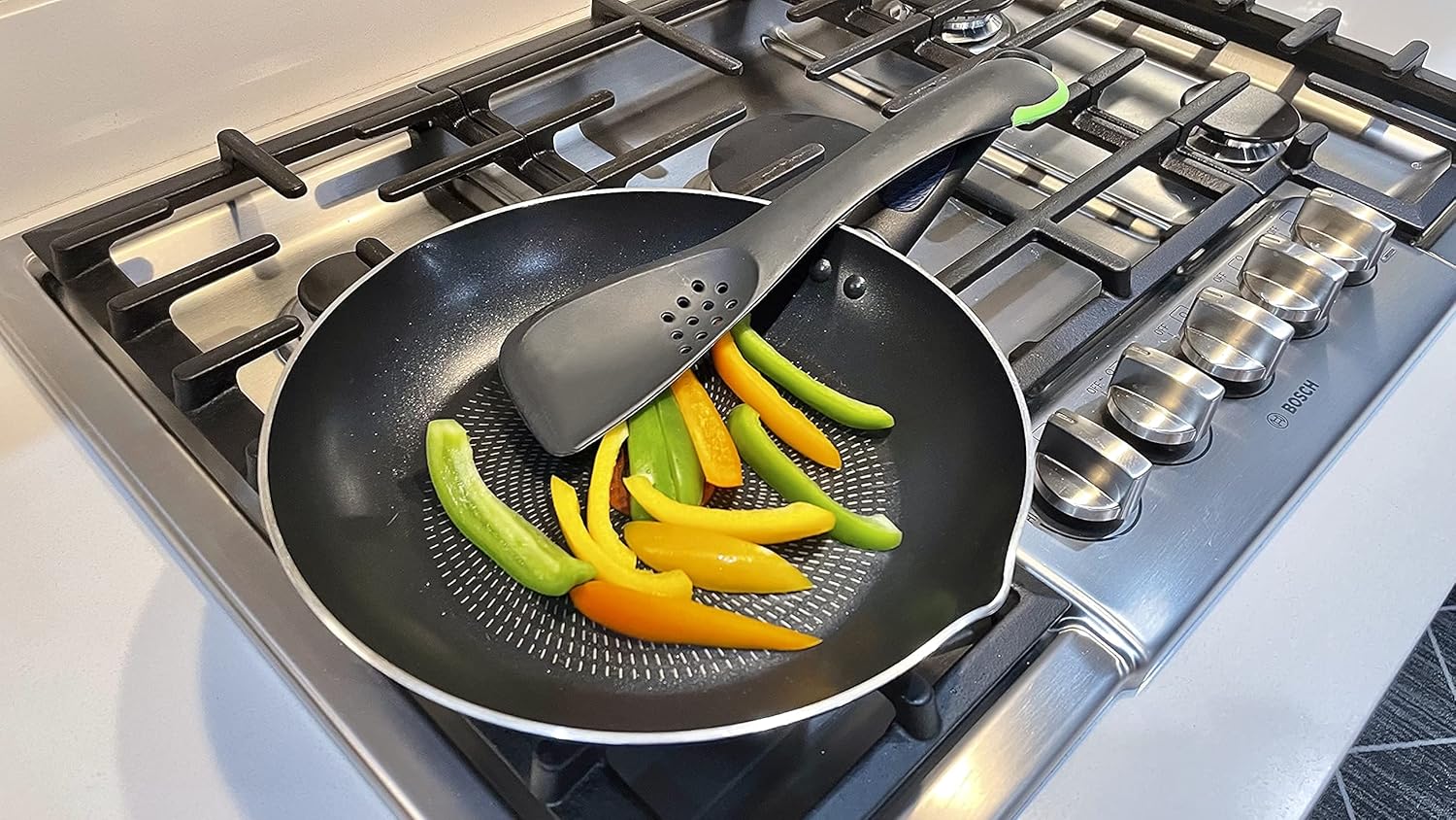 - Roaming Cooking Kitchen Utensil 5 in 1 Multifunctional Nonstick Cutter, Turner, Colander, Soup Spoon, Spatula, Green