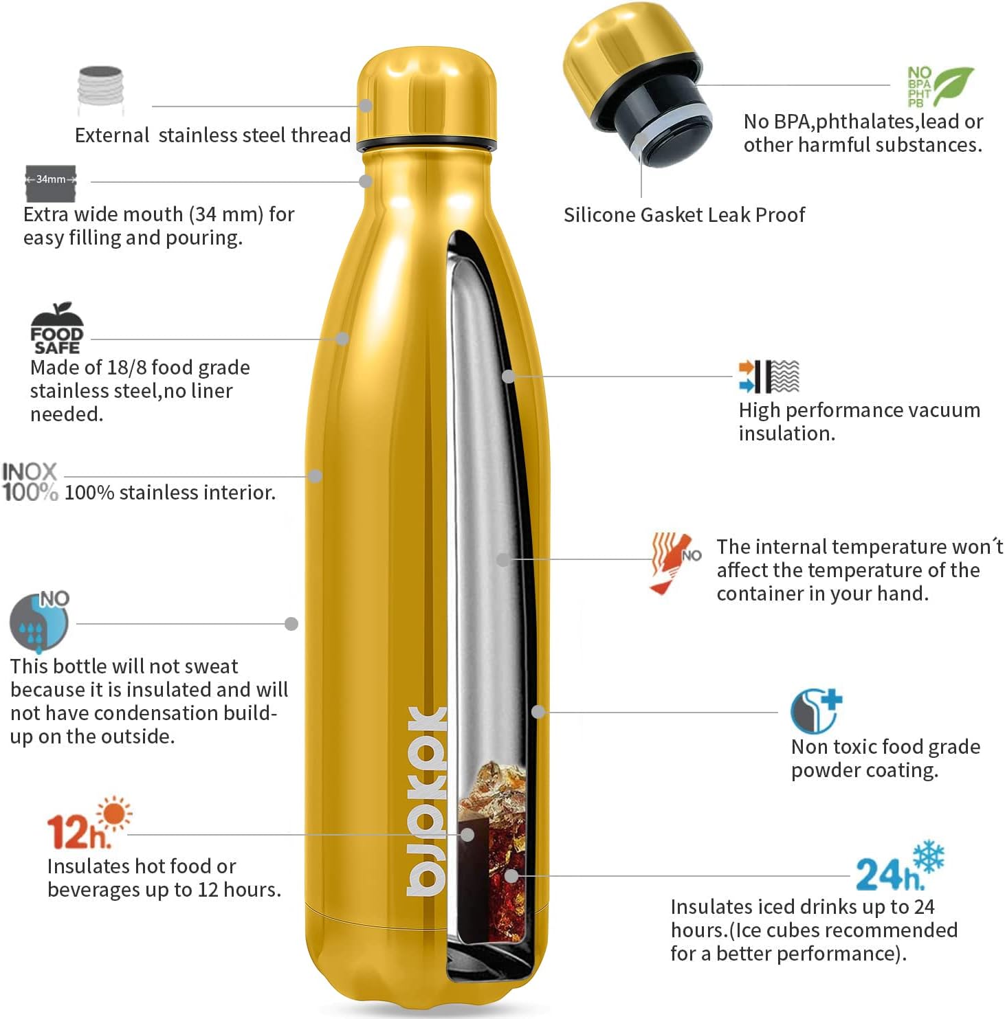 BJPKPK 25oz Insulated Stainless Steel Water Bottle BPA Free, Shining Gold