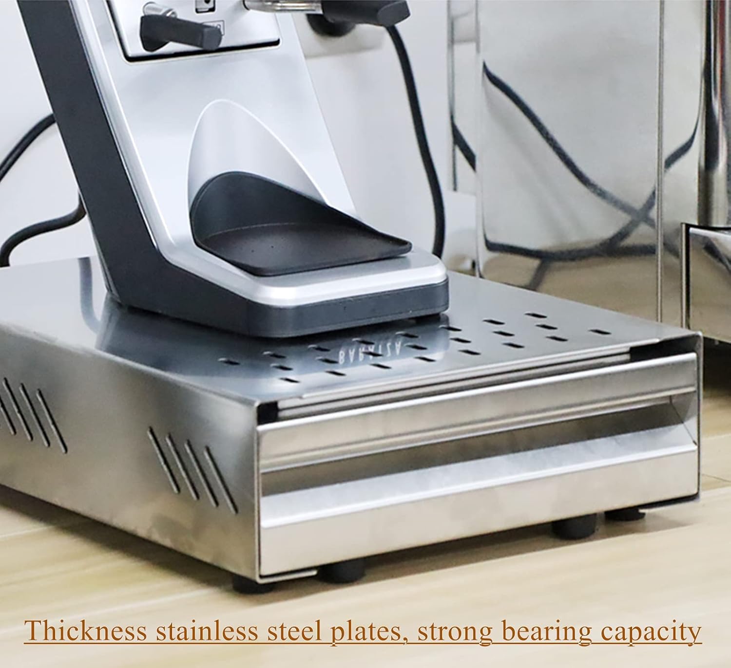 - [Strong Load-bearing Capacity]:Length: 350mm(13.8inch), width: 250mm(9.8inch), Heigth: 83mm(3.3 inches), The outer shell is made of 0.06 Inch thick stainless steel sheet, which has excellent load-bearing capacity. It can be placed under grinders, small household coffee machines, and most of type coffee machines, please according to the size of the coffee machine you need to match