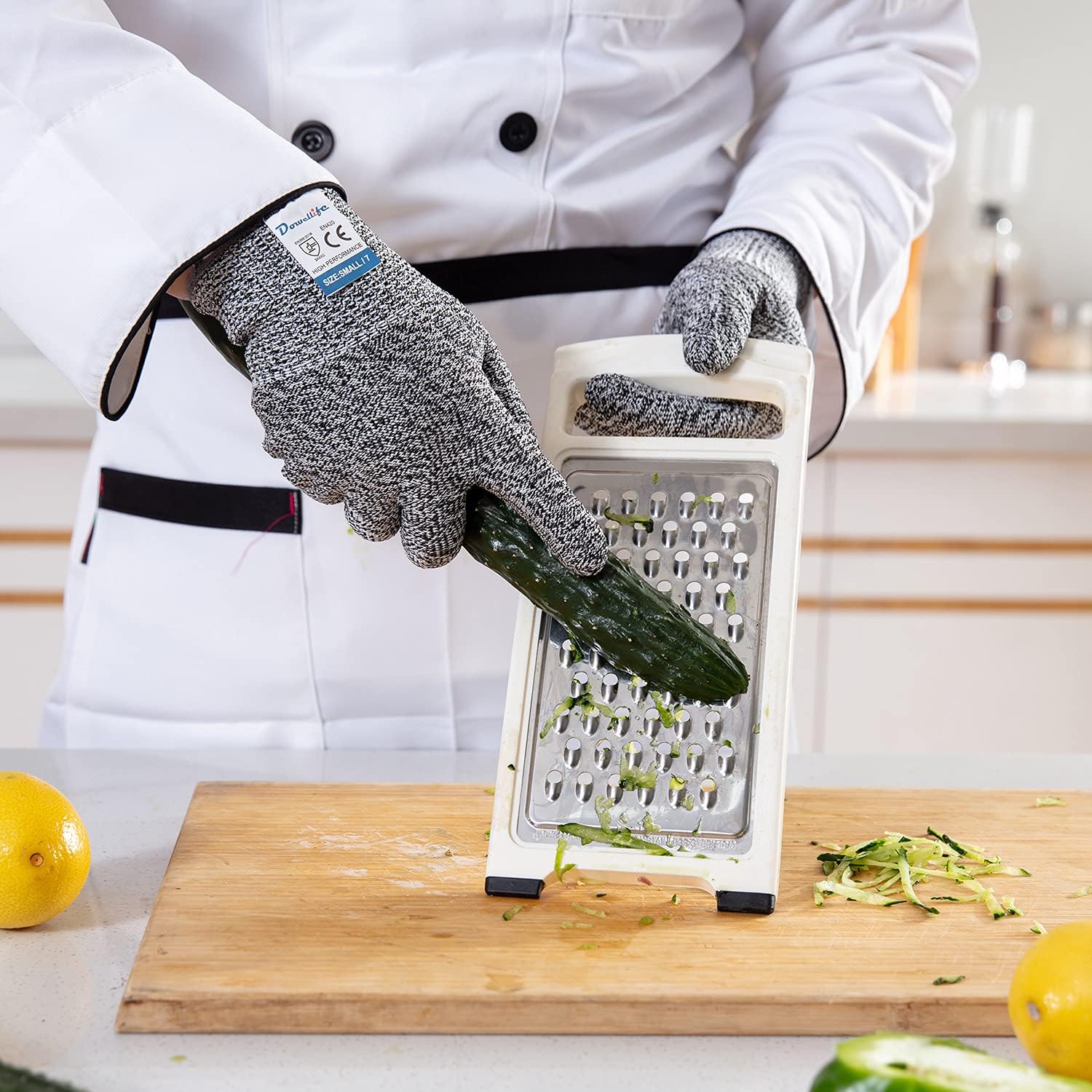 Dowellife 3 Pairs Cut Resistant Gloves Food Grade Level 5 Protection, Safety Kitchen Cuts Gloves for Mandolin Slicing, Fish Fillet, Oyster Shucking, Meat Cutting and Wood Carving (Black Gray, Small)