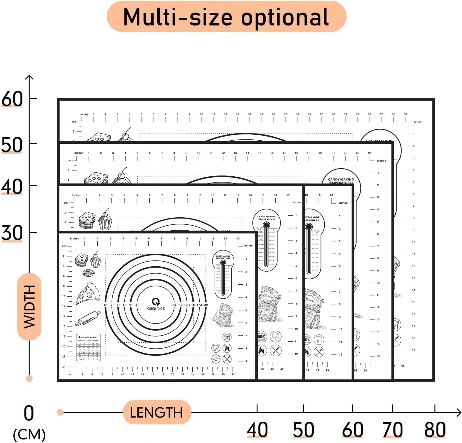 - PERFECT LARGE SIZE: 24*32 inch silicone baking mat turns any flat surface into a baker's work station, The thickness of the pastry mat is only 0.4mm, so it rolls up small to take up little space in the drawer, don't take up space in the kitchen and helps reduce the mess and cleanup.