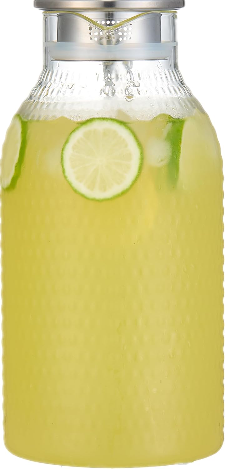 - [Premium Quality] Safe to put boiling water into it and use it on stove-top because our pitcher is made by heat resistance borosilicate glass which is lead-free, lightweight, durable and withstands temperature between 0 ℉ and 300 ℉. The ring of the lid is made by silica gel BPA-free.