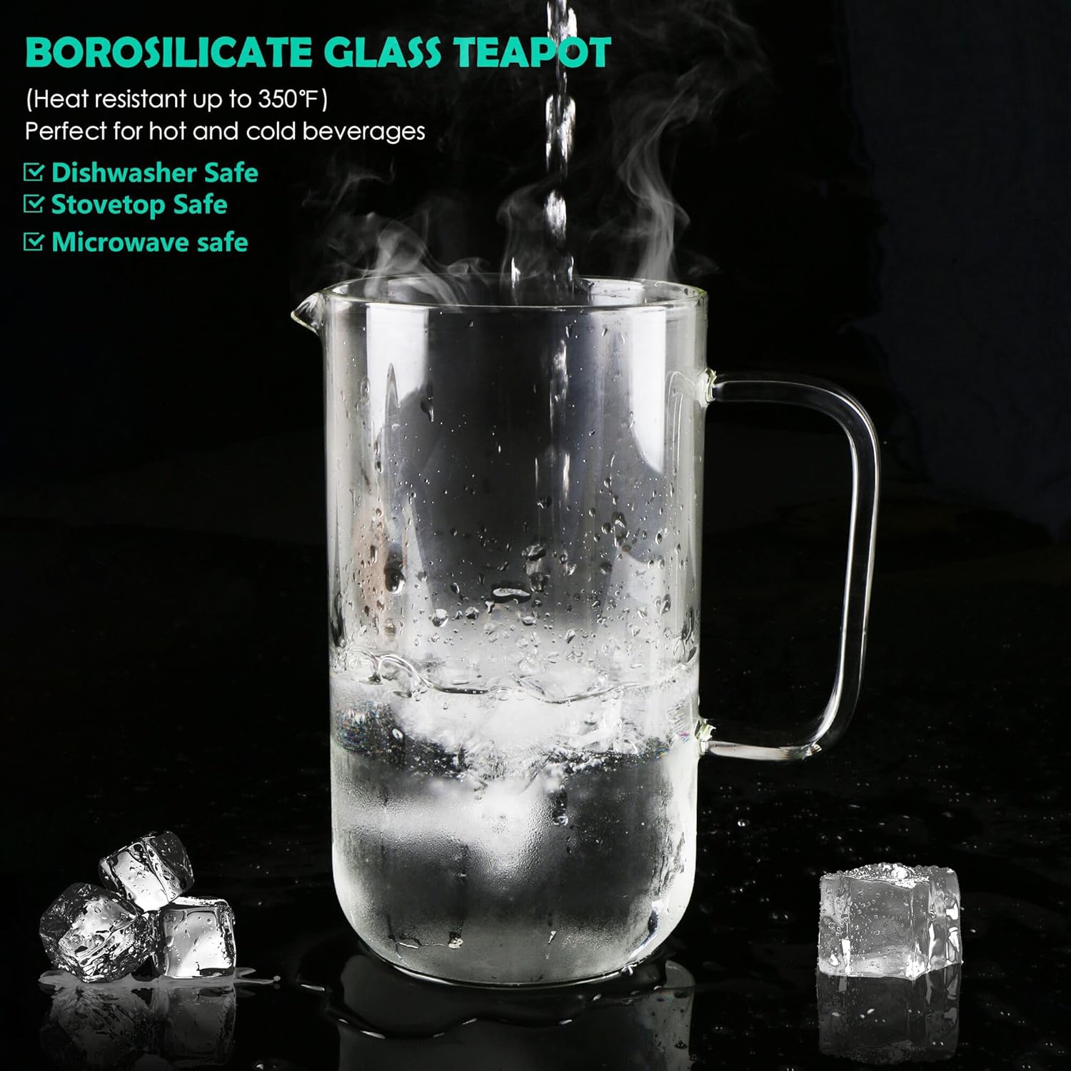 Aquach 51oz Glass Teapot with Stainless Steel Removable Infuser, Stovetop & Dishwasher Safe, Ideal for Loose & Blooming Tea Brewing