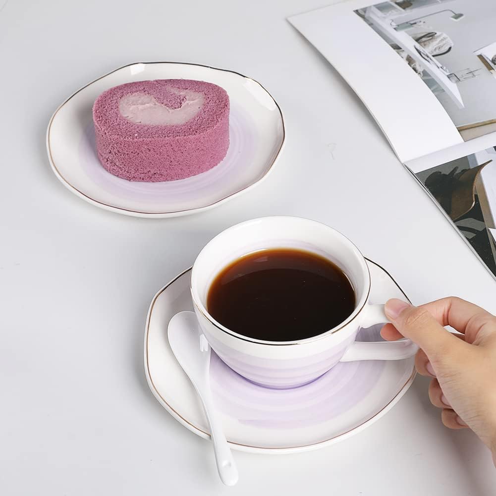 Sweejar Porcelain Tea Sets, 8 OZ Cups & Saucer Service for 4, Teapot Sugar Bowl Cream Pitcher Teaspoons and Tea Strainer for Adult Tea Coffee Afternoon Party (Purple)