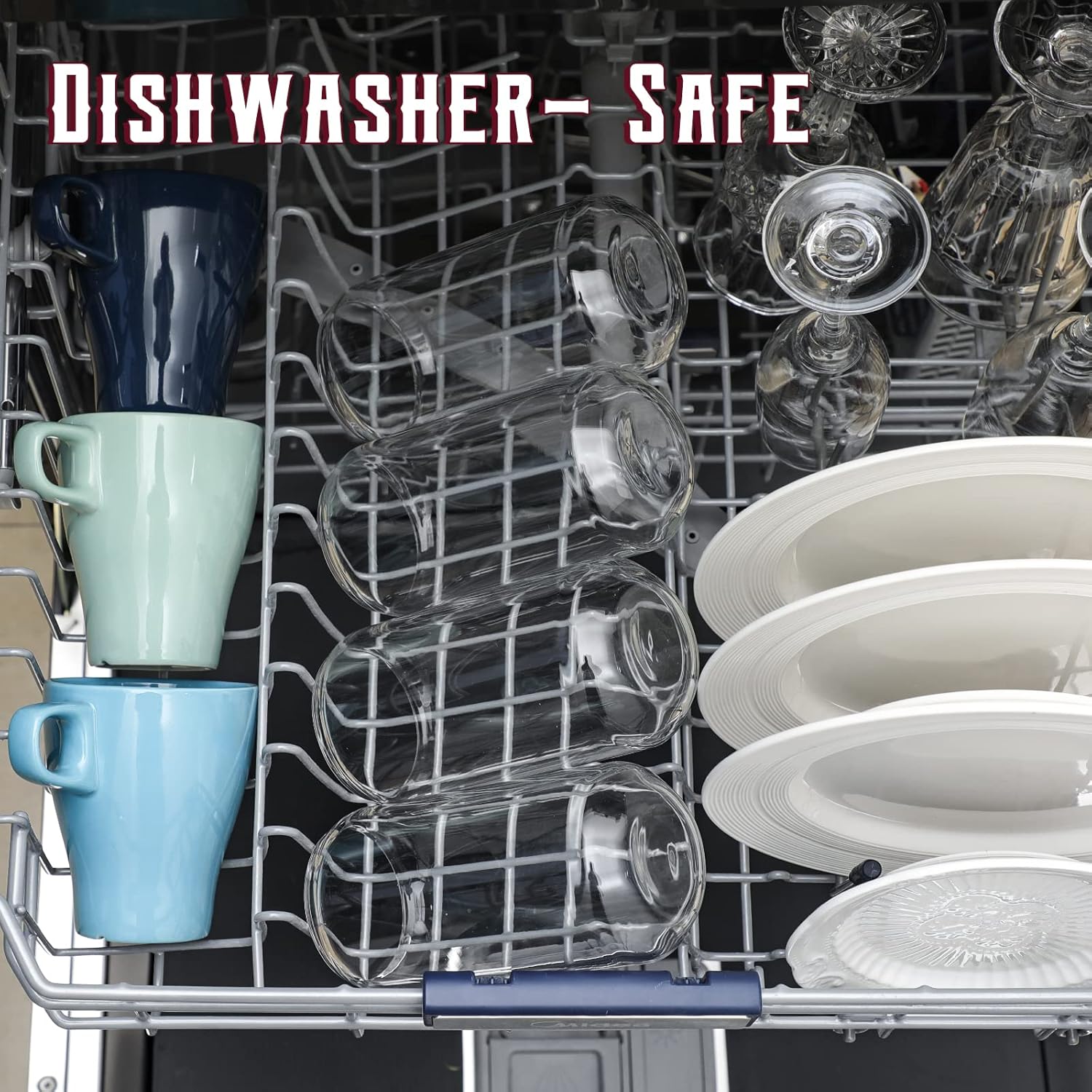 - DURABLE and SAFE: The can Design glasses are made of high-quality durable clear glass, Lead-free and BPA-free. It can be used safely for a long time. This thick clear glass can withstand the sudden changes in the temperature difference between -68°F to 212°F, making them dishwasher safe. If you want to decorate this glass, you can do DIY easily without breakage.