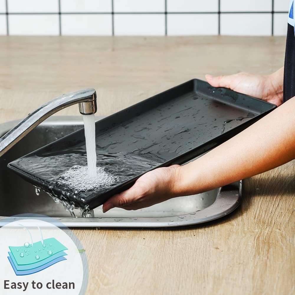 - 【DISHWASHER SAFE AND EASY CLEANUP】: This rectangle serving tray set can be used in the oven, microwave, refrigerator and dishwasher. Smooth glaze resists sticking, easy to clean with dishwasher or even hand wash with soap and water.