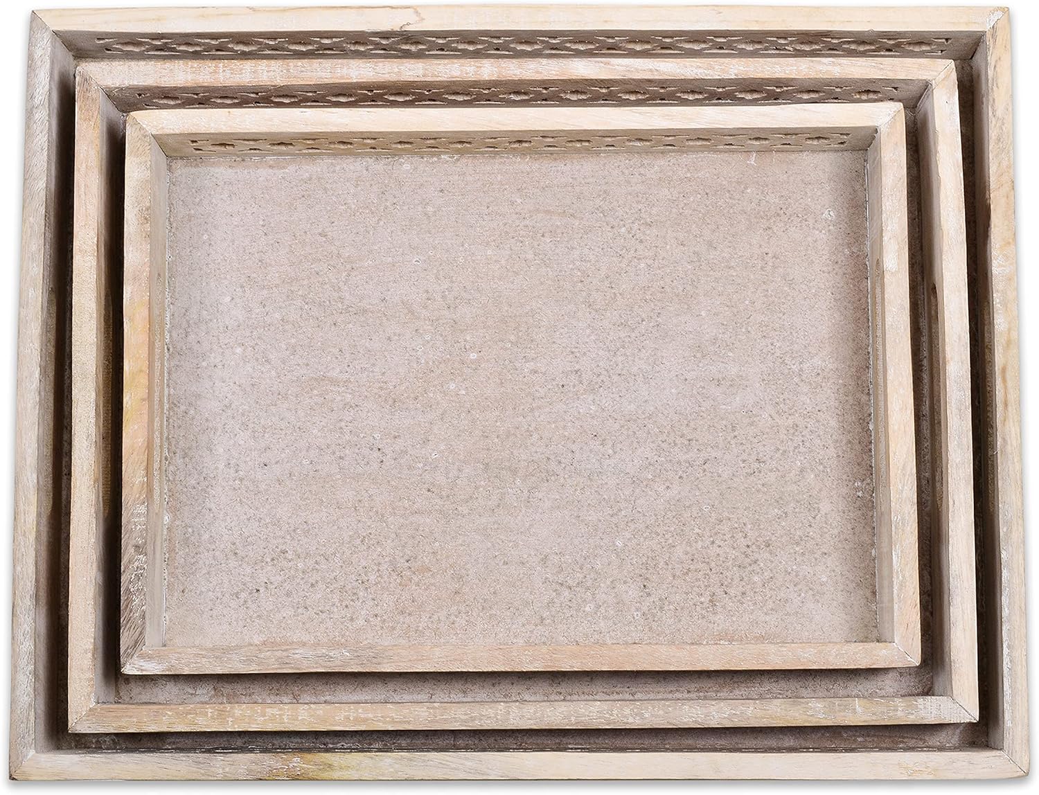 - MEDIUM TRELLIS STYLE TRAY - Visually appealing with its handcrafted carvings, these elegant whitewash finish mango wood trays offer a distinct design while measuring an easy to carry 16 x 12 x 2.5-inches