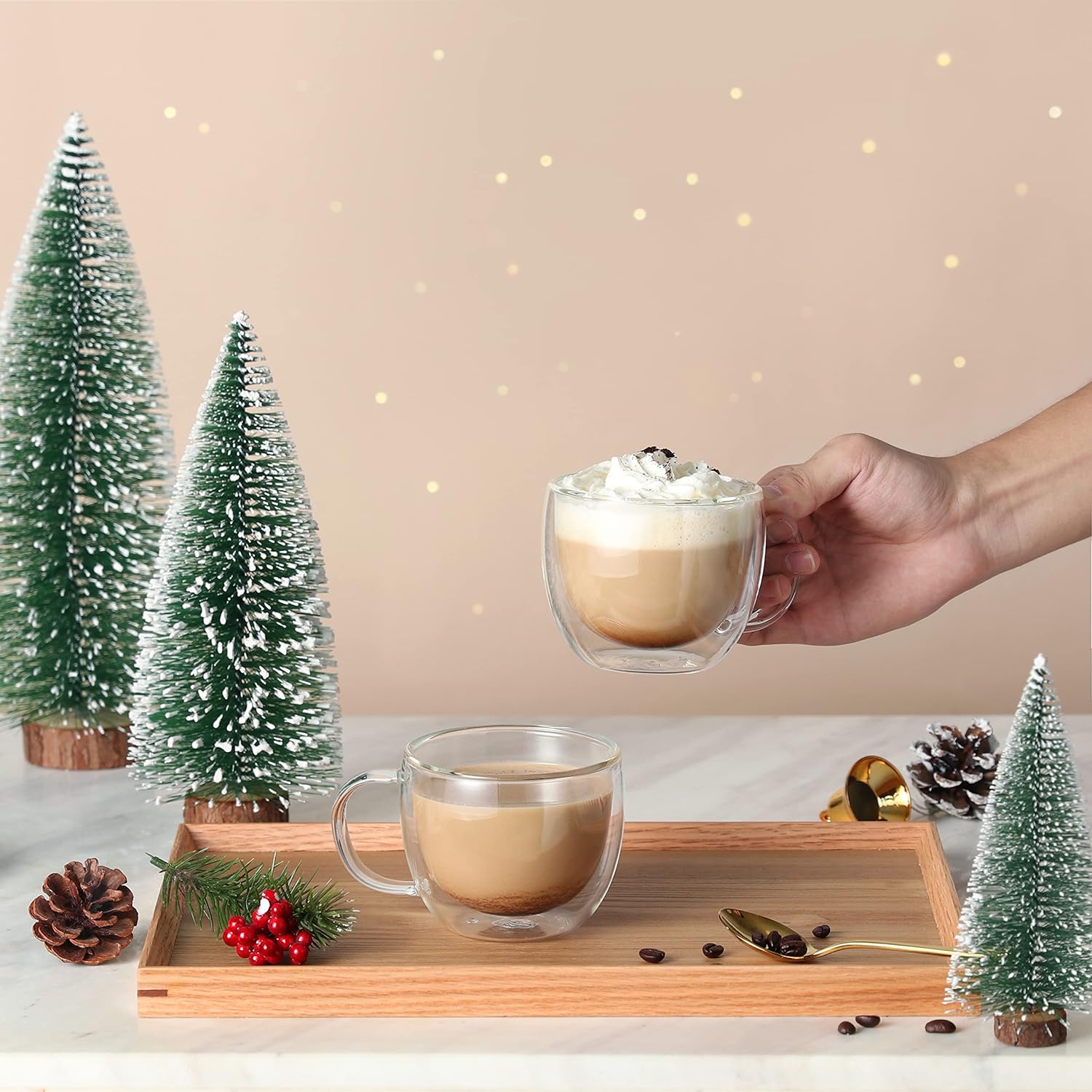 CNGLASS 8oz Double Wall Glass Coffee Mugs,Clear Insulated Espresso Glass Mugs with Handle for Latte,Cappuccino,Coffee,Set of 4