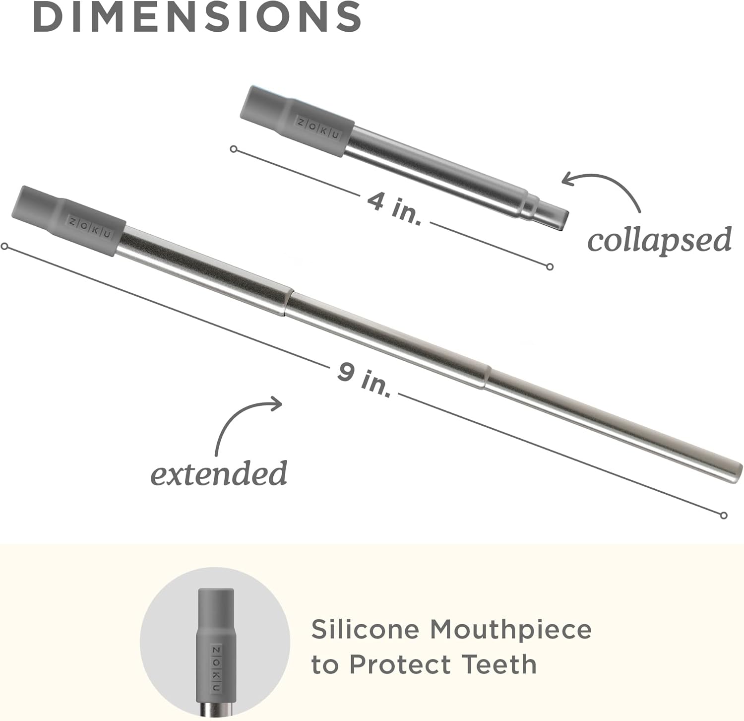 - CUSTOMIZABLE LENGTH - Telescopic design extends from 4-inches up to 9-inches and fits any size glass; use for smoothies, iced coffee, adult beverages and more