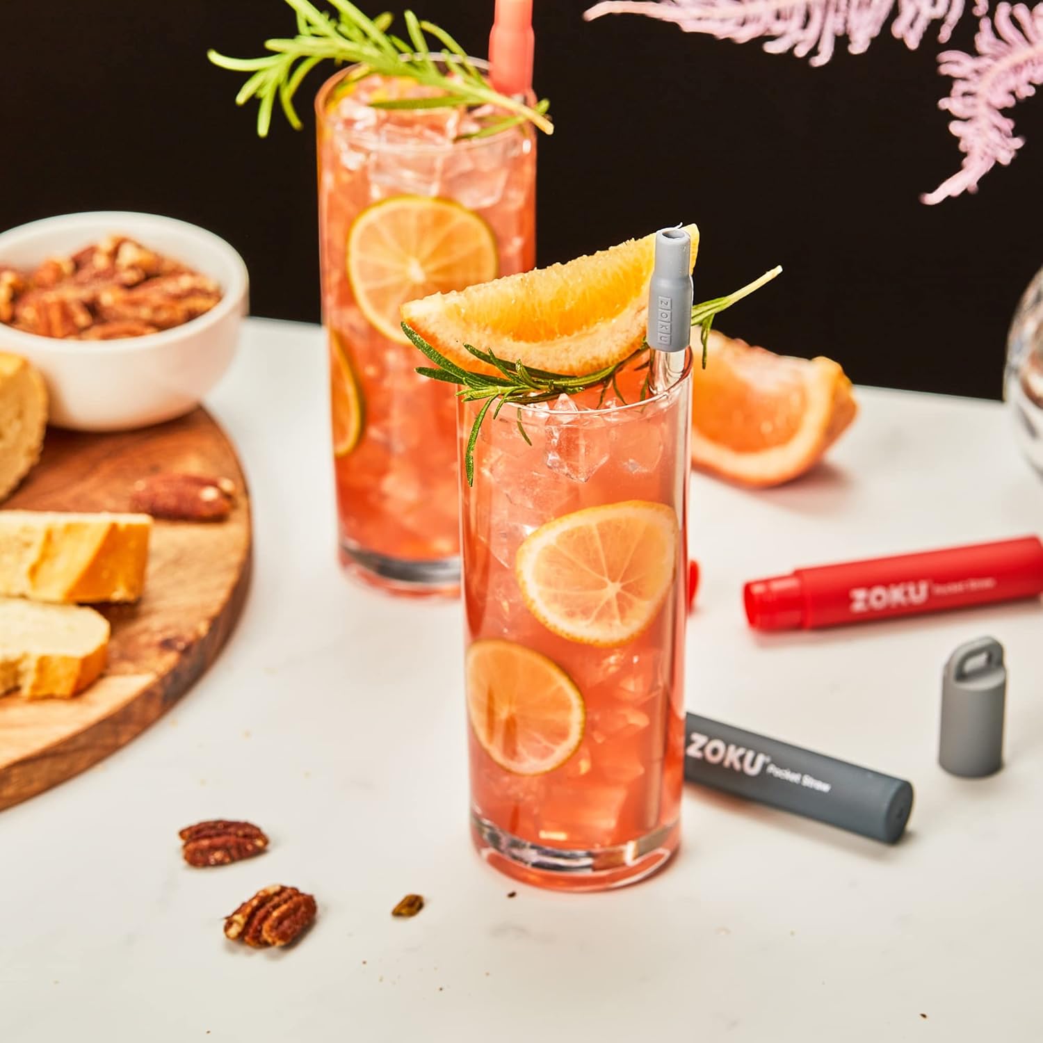 - DETAILS - Set of 3 includes 1 Purple, 1 Grey, and 1 Red ZOKU Pocket Straw, carrying cases and cleaning brushes; case measures 4.4-inches long; Dishwasher Safe (top rack only); BPA and Phthalate Free; designed in the USA