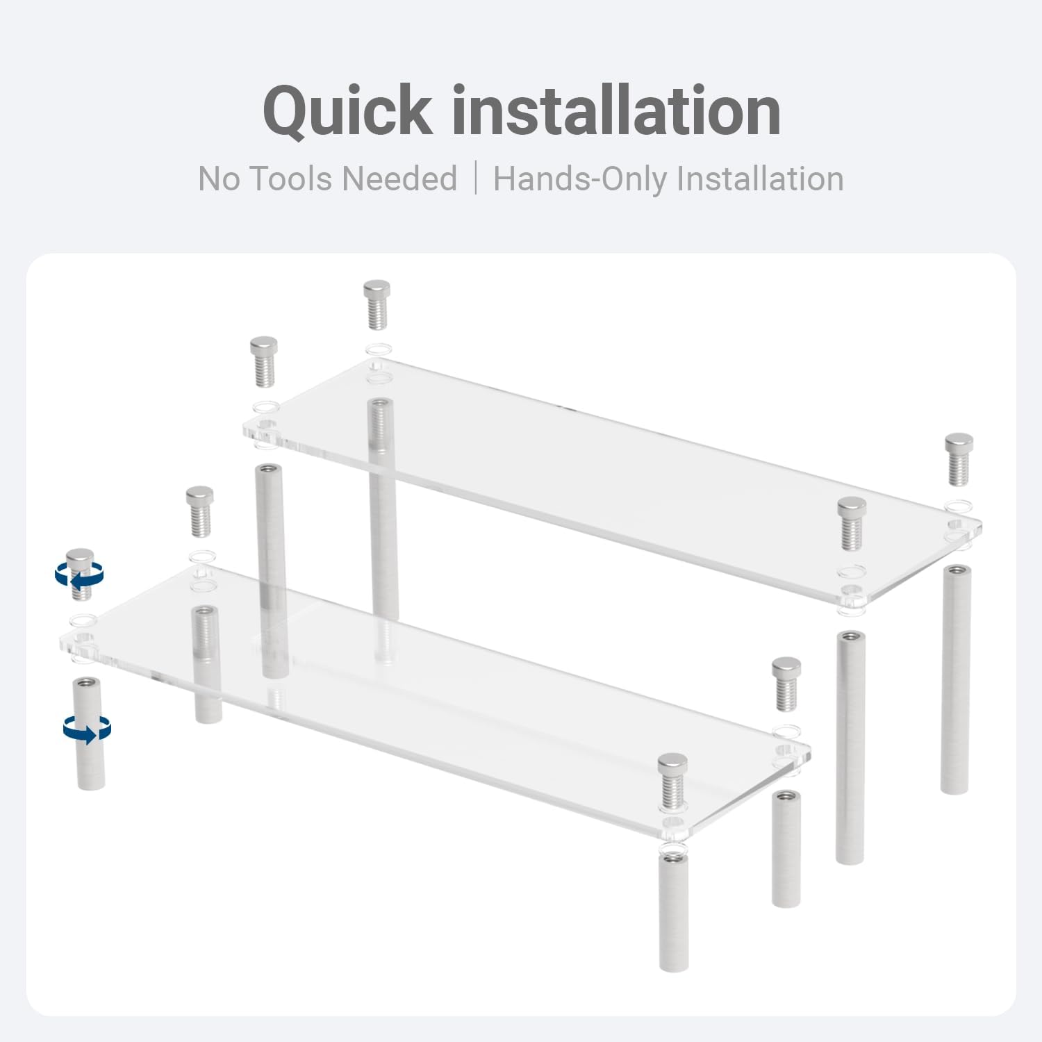 - Acrylic Stands Display Shelf Can Help Organize and display your items.This Clear Display Riser Is an Great Ideal for Displaying Celebrating Party Desserts, Collection, Displaying Cosmetics And More.