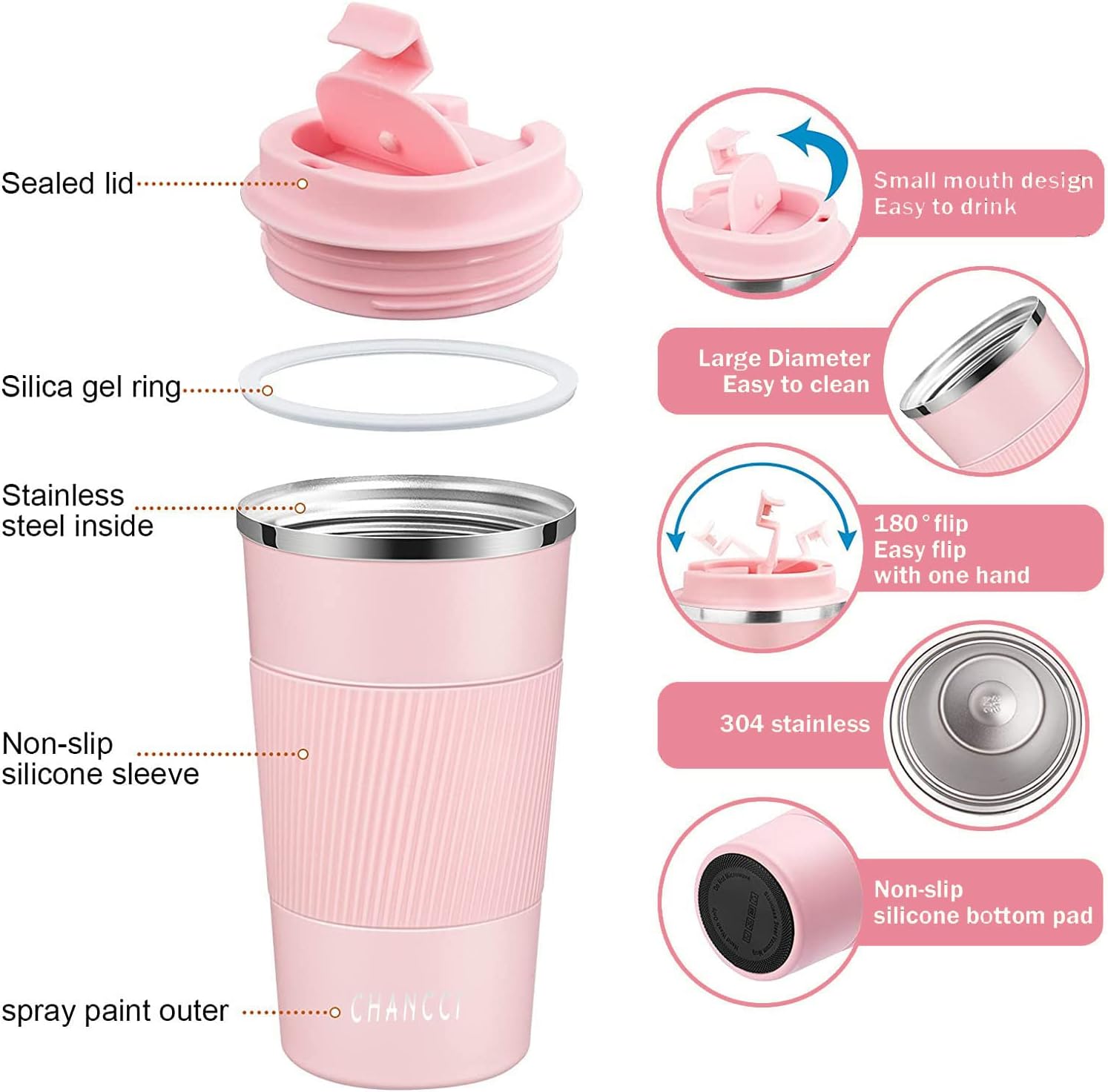 - 【 Double Wall Stainless Steel Travel Coffee Mug 】 CHANCCI travel coffee mugs feature advanced double-wall vacuum insulation technology, made of high quality 18/8 food-grade 304 stainless steel , keeps the beverage warm or cold for up to 4-6 hours.
