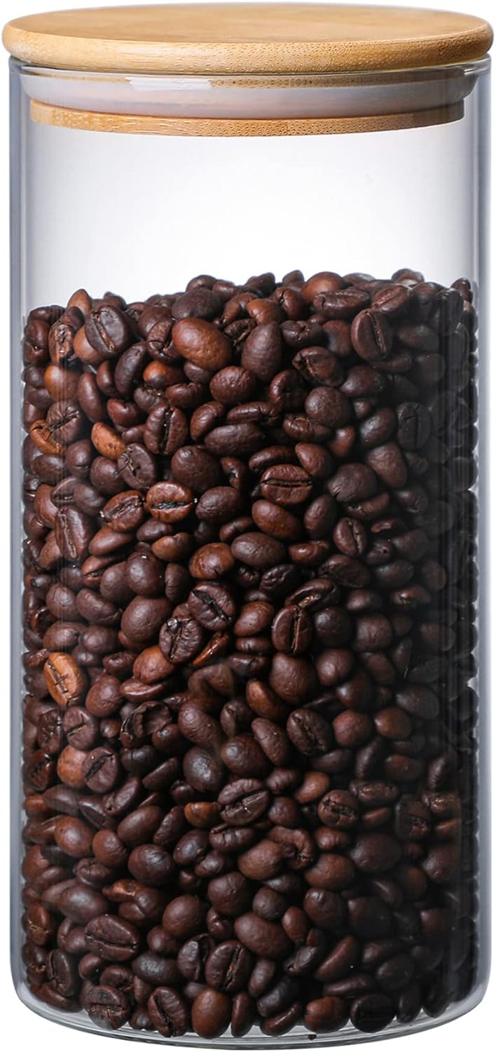 - Elegant Clear Glass Containers: With nature texture wood lid and a clear glass body, this super clean glass airtight container canister spruces up your kitchen while showing the contents storage inside. With retro style wooden cover top and exquisite style glass body design, this storage jar is also a modern decoration while taking full advantage of space for your cabinet and pantry countertop.