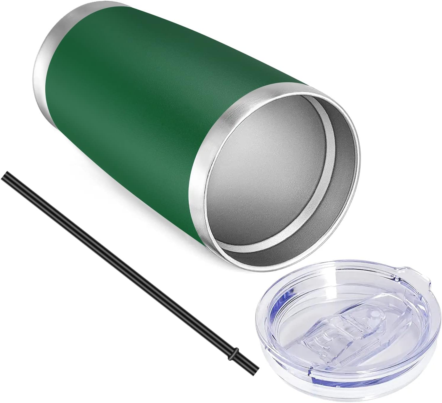 VEGOND 20oz Tumbler with Lid and Straw Stainless Steel Tumbler Cup Bulk Vacuum Insulated Double Wall Travel Coffee Mug Powder Coated Coffee Cup(Powder Green 6 Pack)