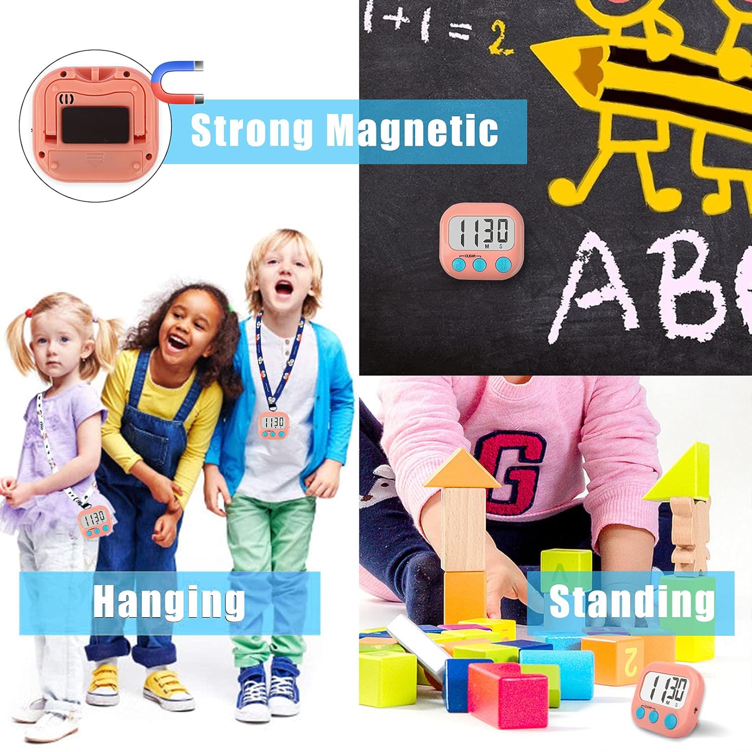 12 Pack Digital Kitchen Timers for Cooking Magnetic Timer for Cooking Loud Alarm Pink