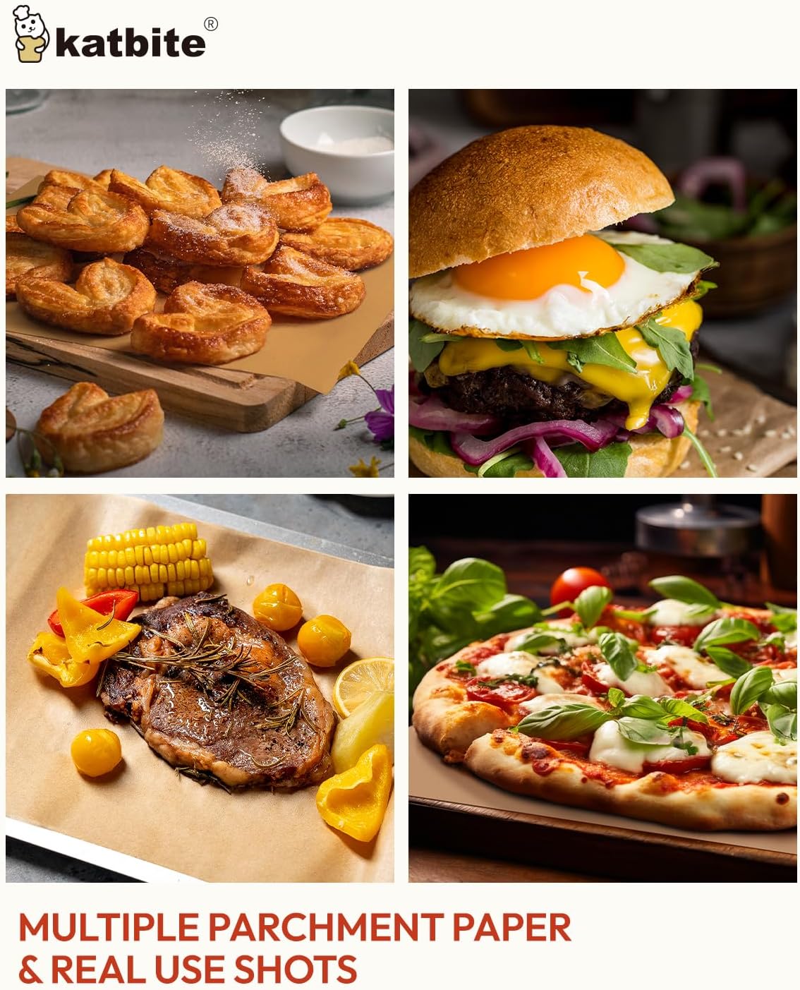 Katbite 350Pcs 9x13 In Parchment Paper Sheets, Heavy Duty Unbleached Baking Paper, Non-stick & Oil Proof for Oven, Air Fryer, Grilling, Steaming and Cooking Bread
