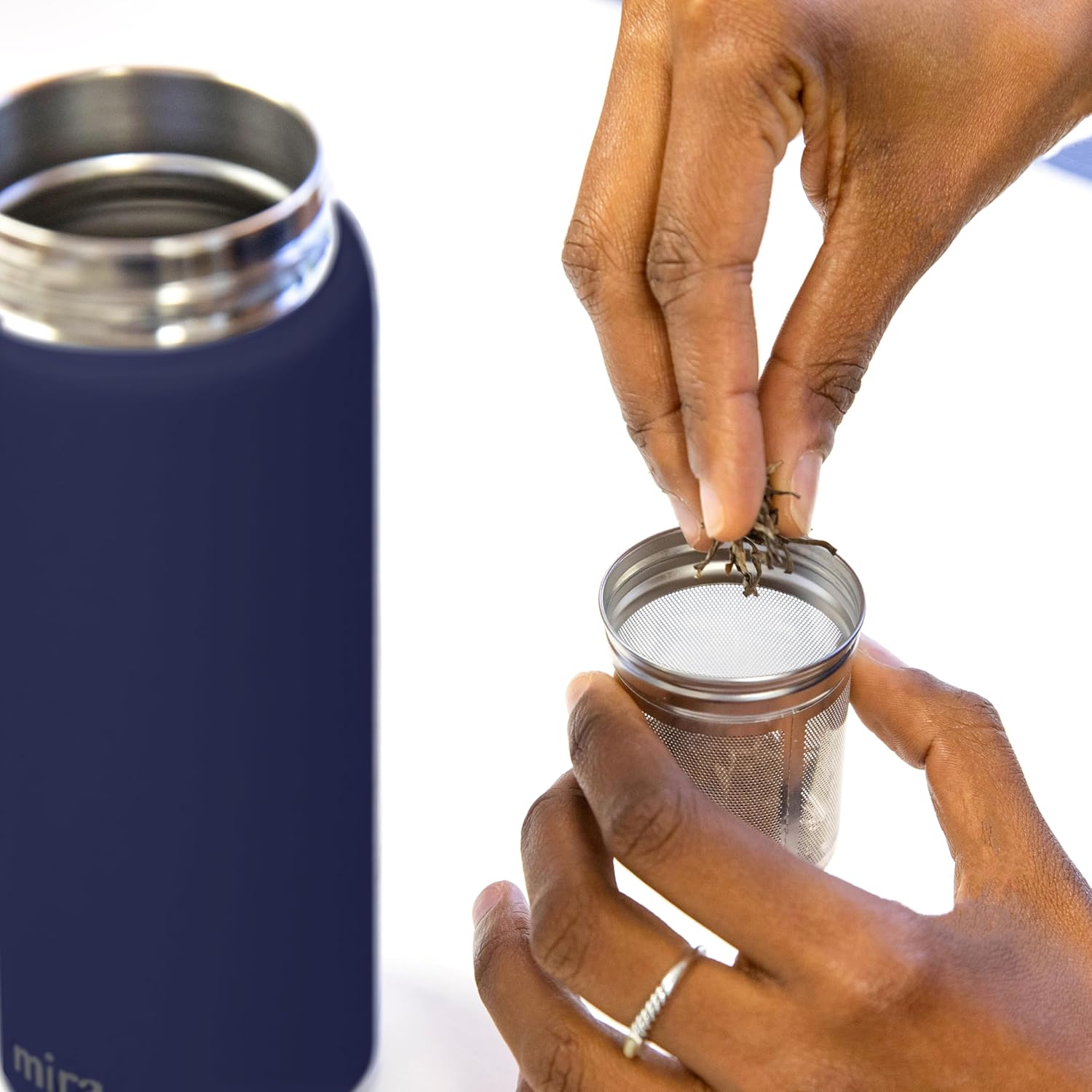MIRA 18 oz Tea Infuser Thermos - Stainless Steel Travel Bottle with Removable Strainer for Loose Leaf Tea - Insulated Hot & Cold Brew Steeper - Marine