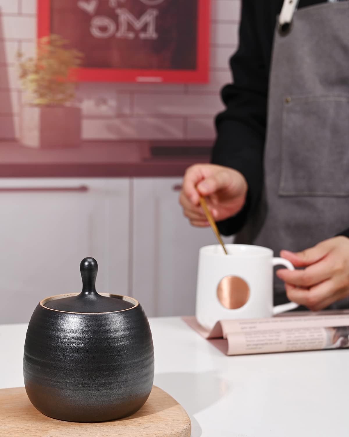 - [Multi-Use] This containers good for matcha tea, coffee, sugar, loose leaf tea, flower buds, biscuits and spices, also good idea use as home unique decorative.