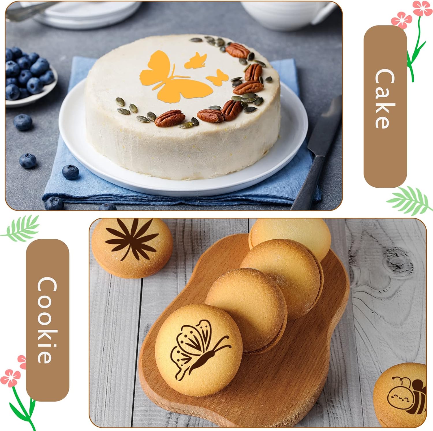 - Facilitate Your Baking: the painting stencils can be served for your baking, easy and clean, you can sprinkle sugar, food coloring, edible powder on them, which can clearly show lovely patterns on the cake, save your baking time and add adorable flavor to your baking