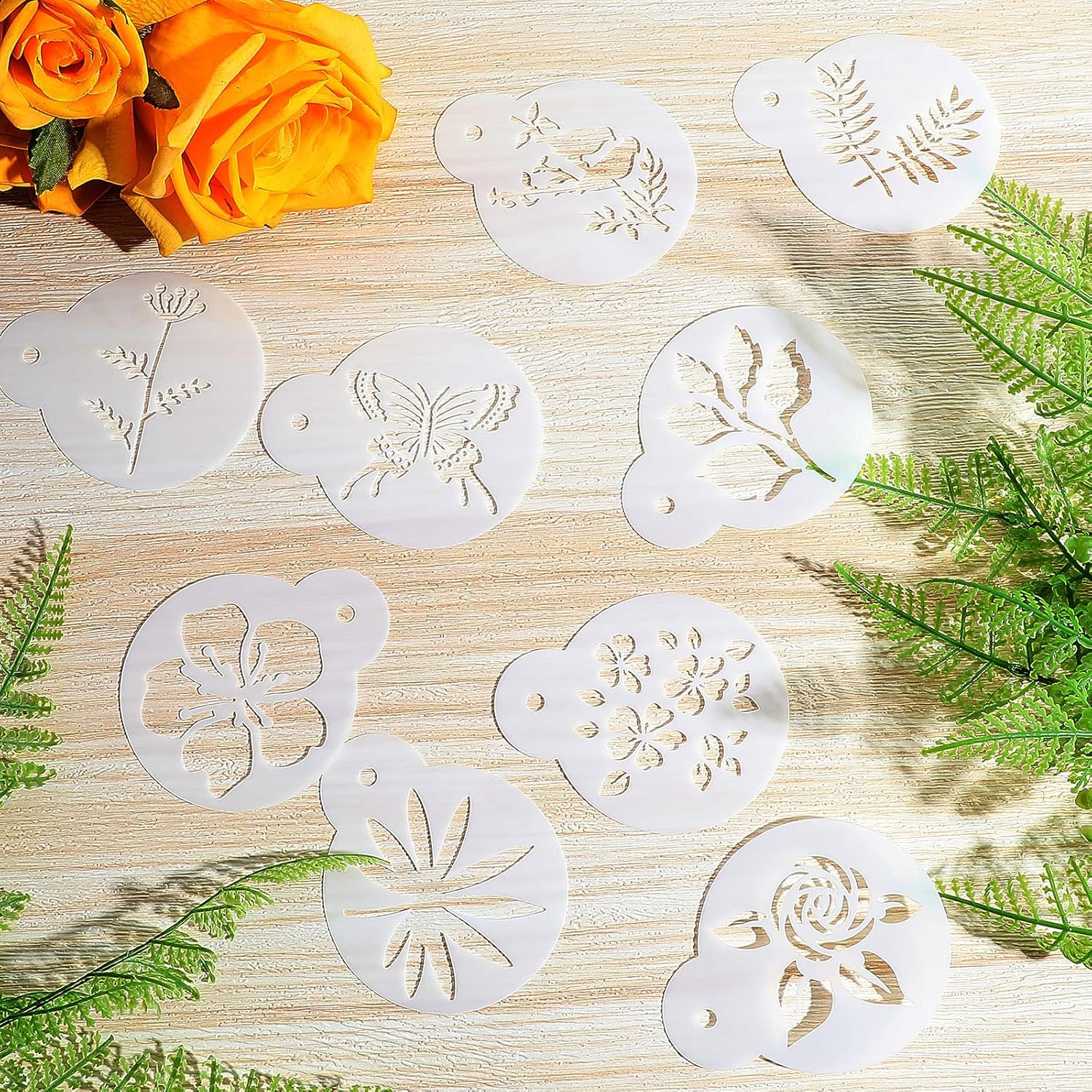 - What You Will Get: you will get 30 pieces paint stencils for the spring and summer seasons, various and vivid patterns, no repeating pattern, such as butterfly, bee, rose, bird, leaf, dragonfly and so on, meet your different ornaments needs