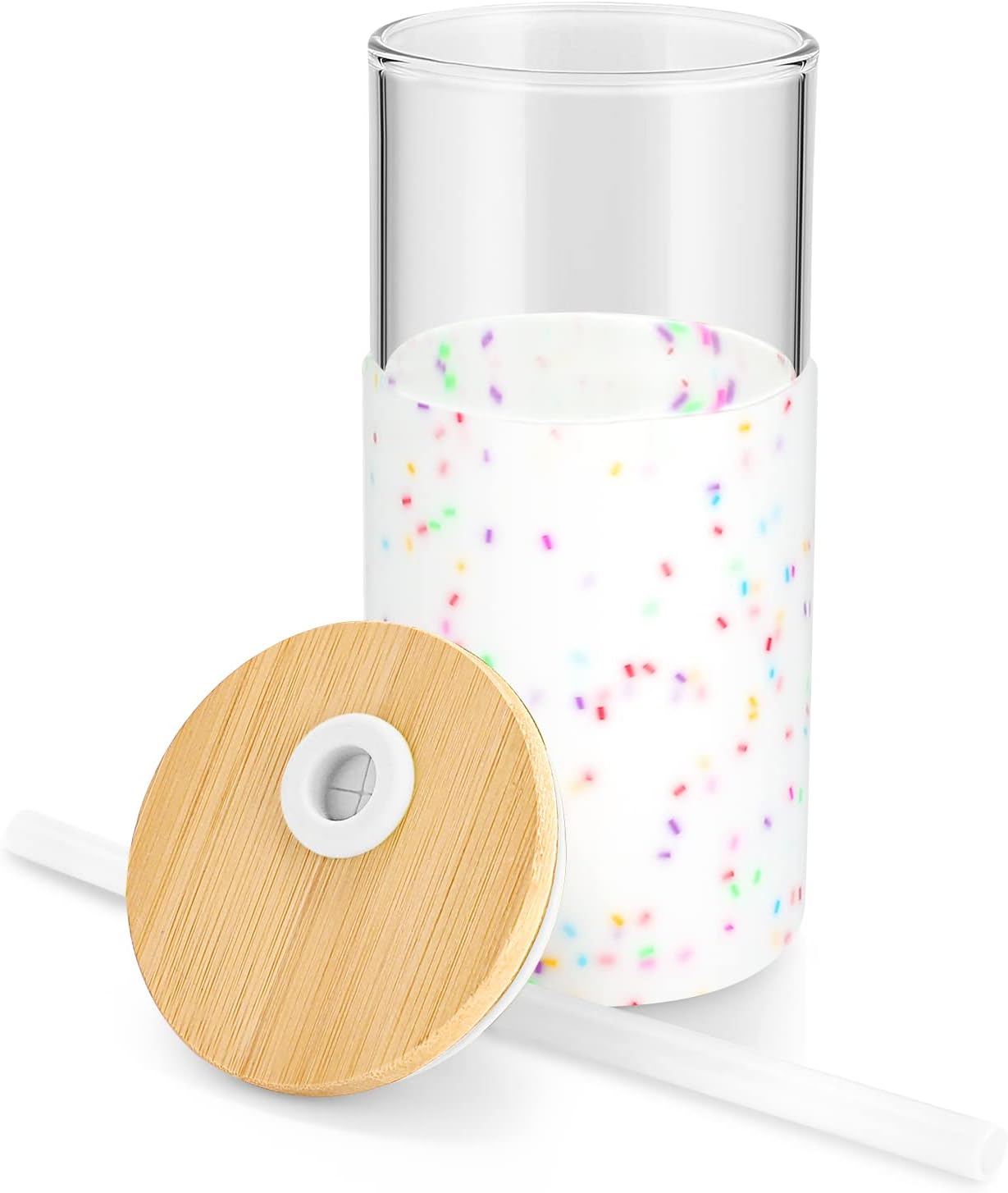 Tronco 16 oz Glass Tumbler with Straw and Bamboo Lid, Iced Coffee Cup Reusable, Smoothie Cups, Tumbler with Silicone Protective Sleeve - BPA Free
