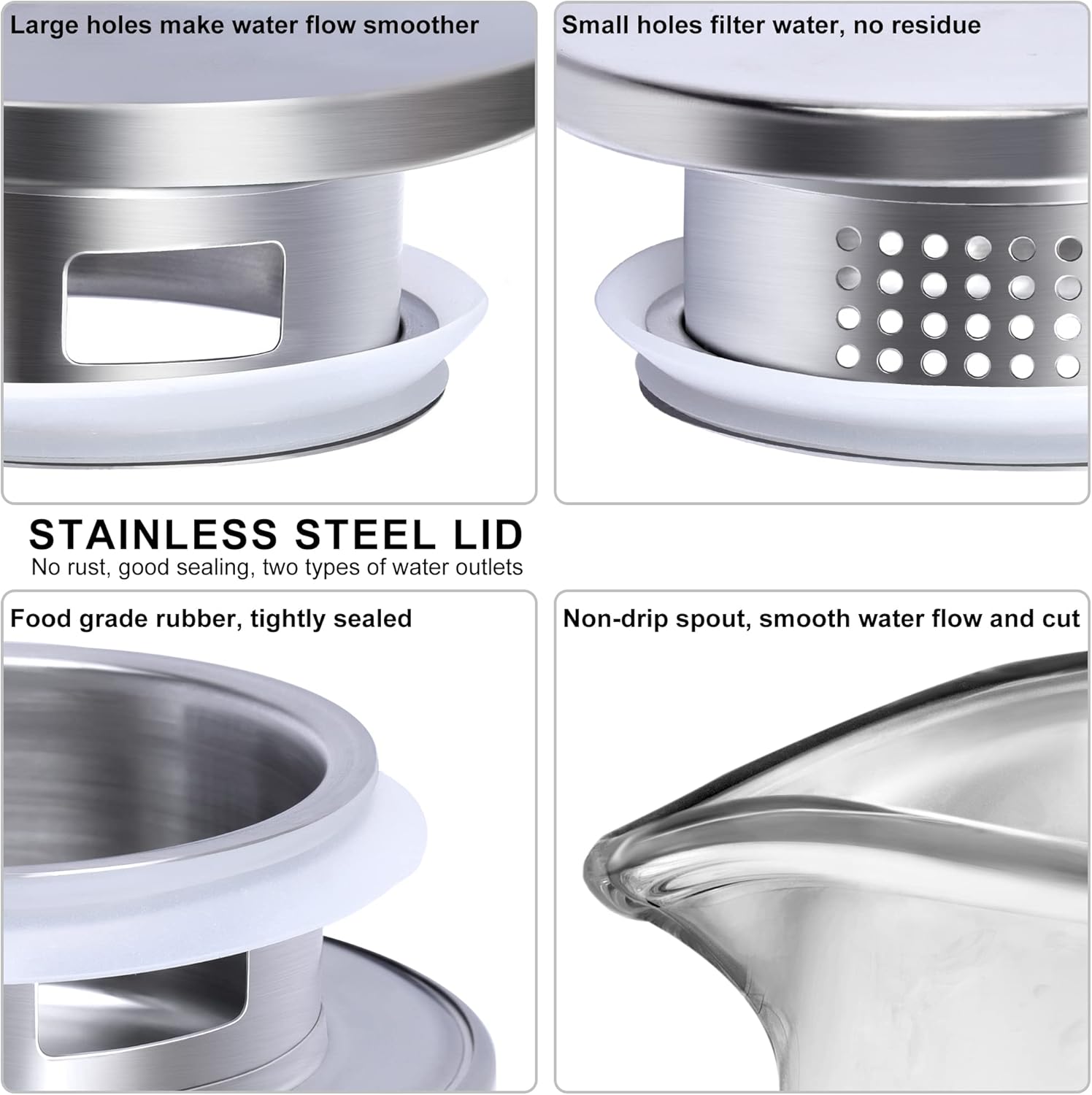 - PREMIUM MATERIAL:The glass pitcher jug is made of borosilicate glass, BPA-free and Lead-free, withstands temperatures -20°C ~150°C/-4°F~302°F. The 304 stainless steel lid with food grade silicone ring to avoid overflow. The thick glass carafe resists cold, hot or boiled drink and minor scratches.