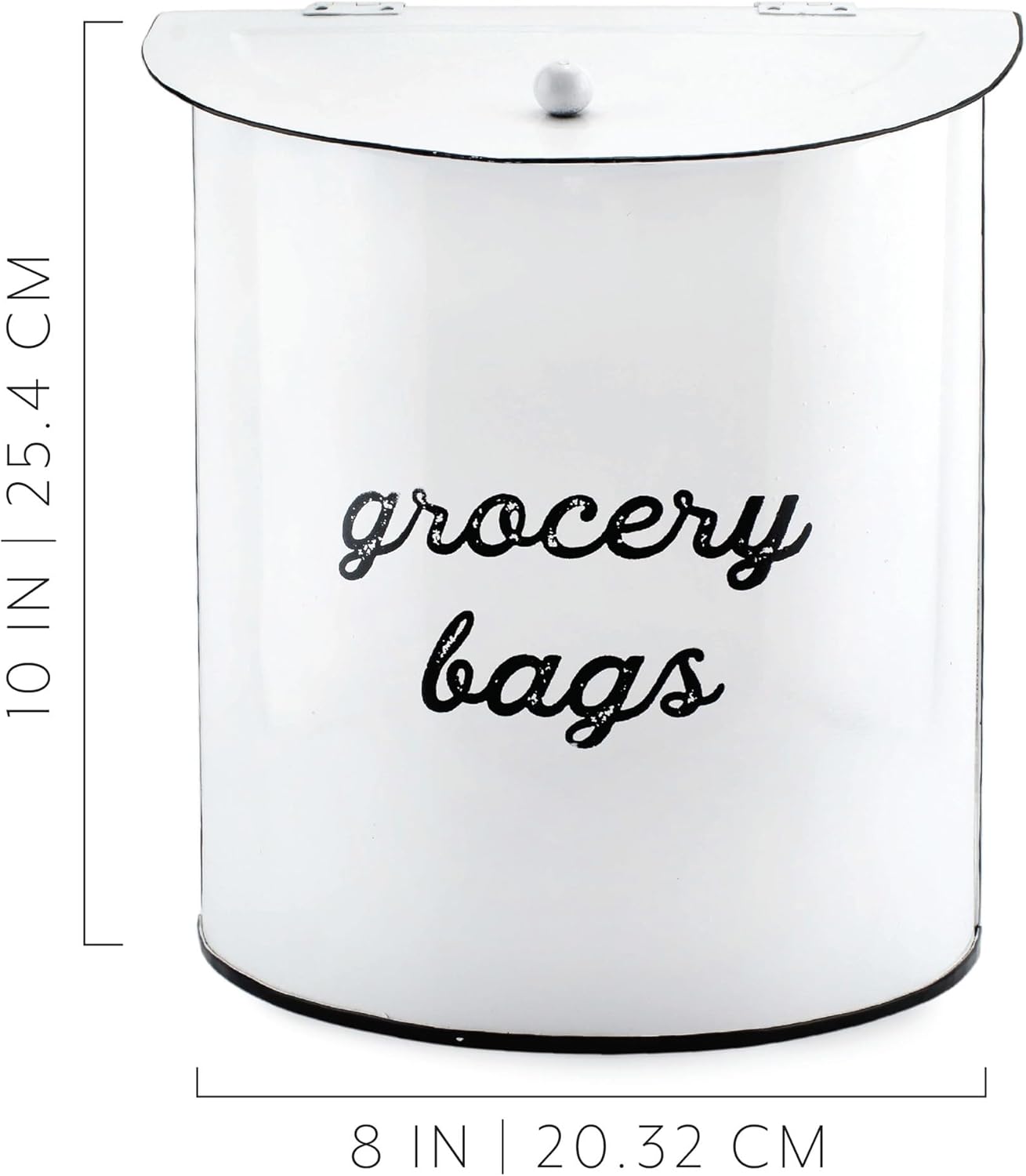 AuldHome Design Rustic Grocery Bag Holder; Wall-Mounted Vintage Enamelware Farmhouse Style Plastic Bag Dispenser for Kitchen or Laundry Room