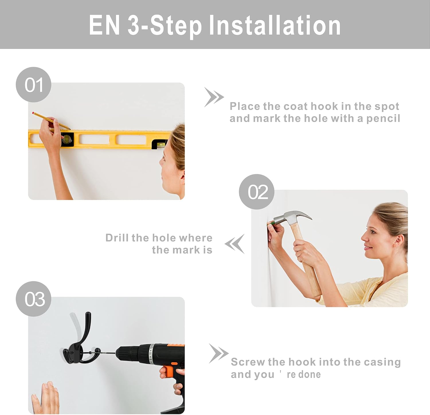 - Material: The Coat Hooks not easy to break, anti-rust and anti-corrosion, The Coat hooks and screws are made of good quality zinc die-cast material, which is hard and durable