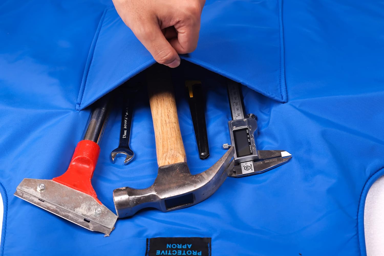 - Material Composition: The Egowz Cryogenic Aprons are composed of 4 layers. The outer layer is Nylon Taslon with a waterproof coating. The inner lining is composed of two kinds of cotton, one is Thinsulate cotton and the other is low temperature cotton. The inner lining is made of comfortable and breathable fabric.