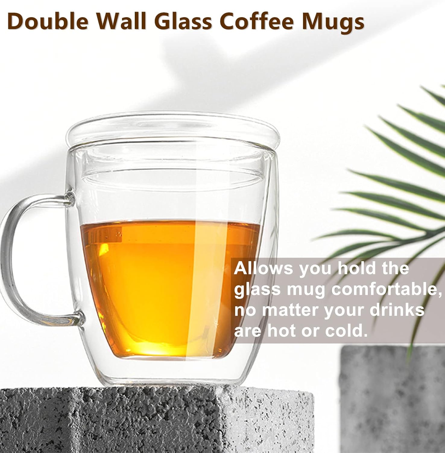 Insulated Espresso Cups - 16 oz Double Wall Glass Mugs With Handle and Lid - Cold & Heat Resistant - Perfect for Coffee, Tea, Milk, Wine