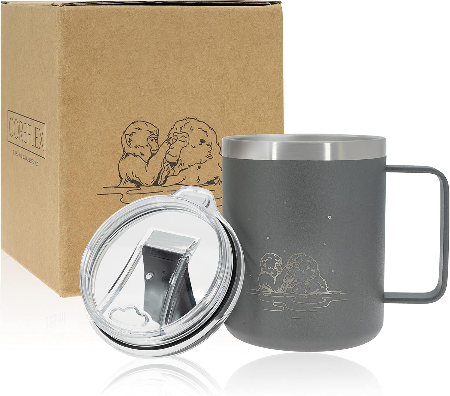 COREFLEX 12 oz Insulated Coffee Mug with Handle & Lid, Stainless Steel Double Walled Vacuum Insulated Tumbler, Travel Coffee Cup Thermal Cup - Home, Office, Travel, Outdoor, Camping