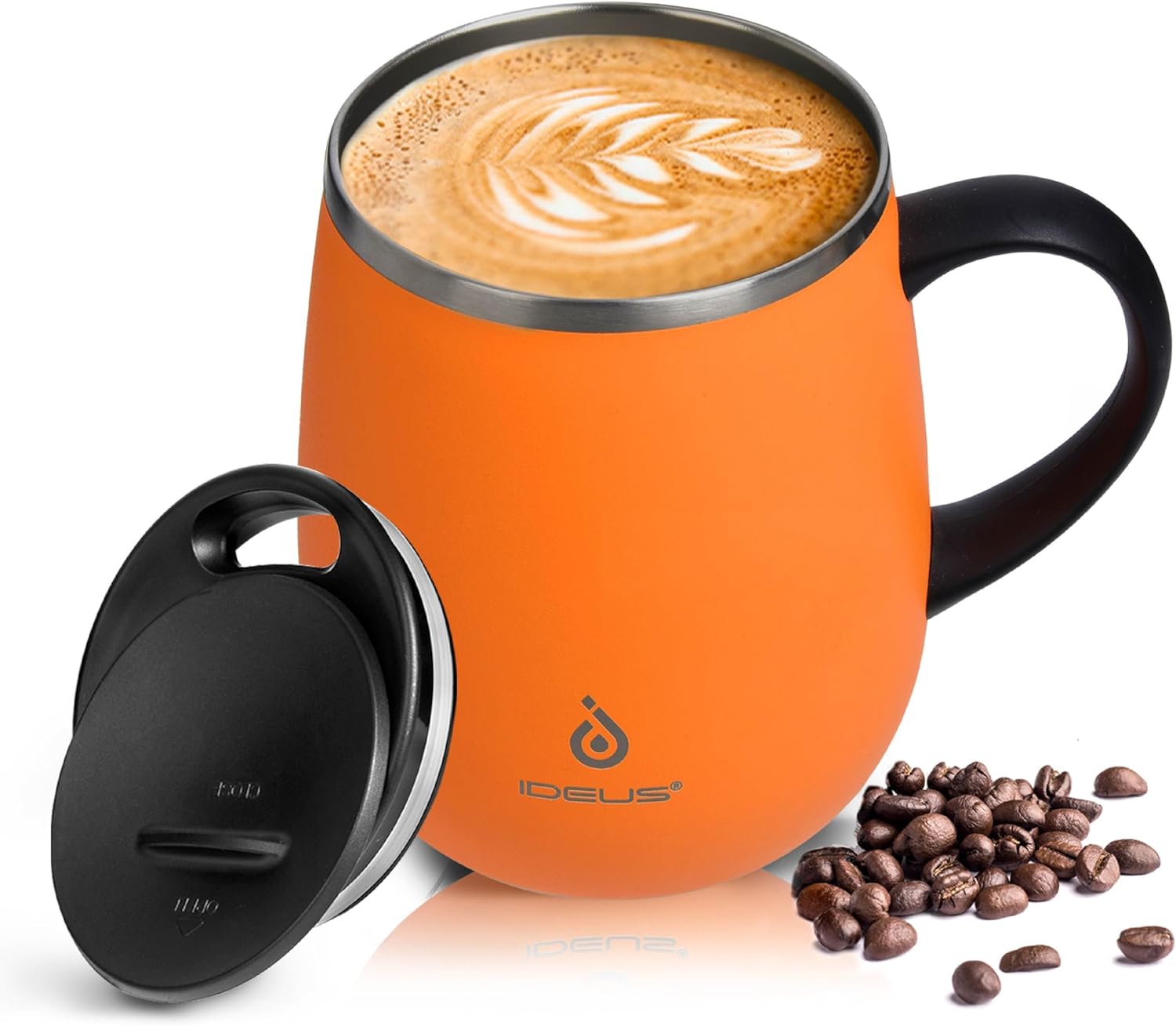 - 【VACUUM INSULATION】 - IDEUS 16 oz coffee tumbler is made from 18/8 stainless steel. Advanced double-wall vacuum insulation technology can keep the temperature of beverages for up to 6 hours (hot) & 12 hours (cold).