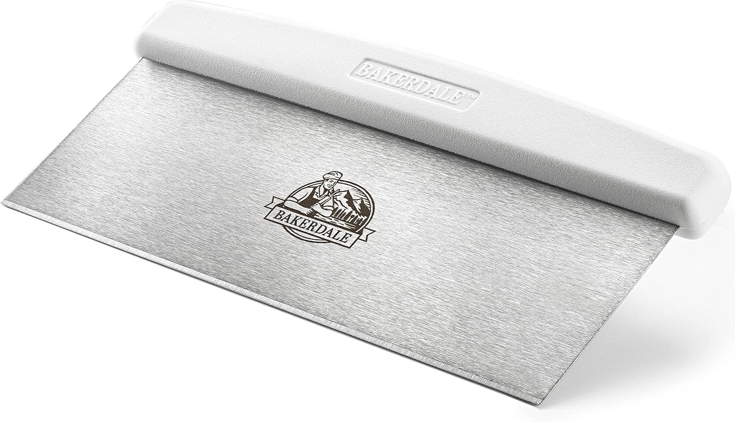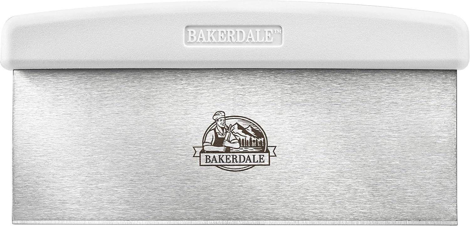 Bakerdale Large Bench/Dough/Cake Scraper, Icing Smoother Spreader, 10-inch Long Stainless Steel Blade, with white Polypropylene Handle