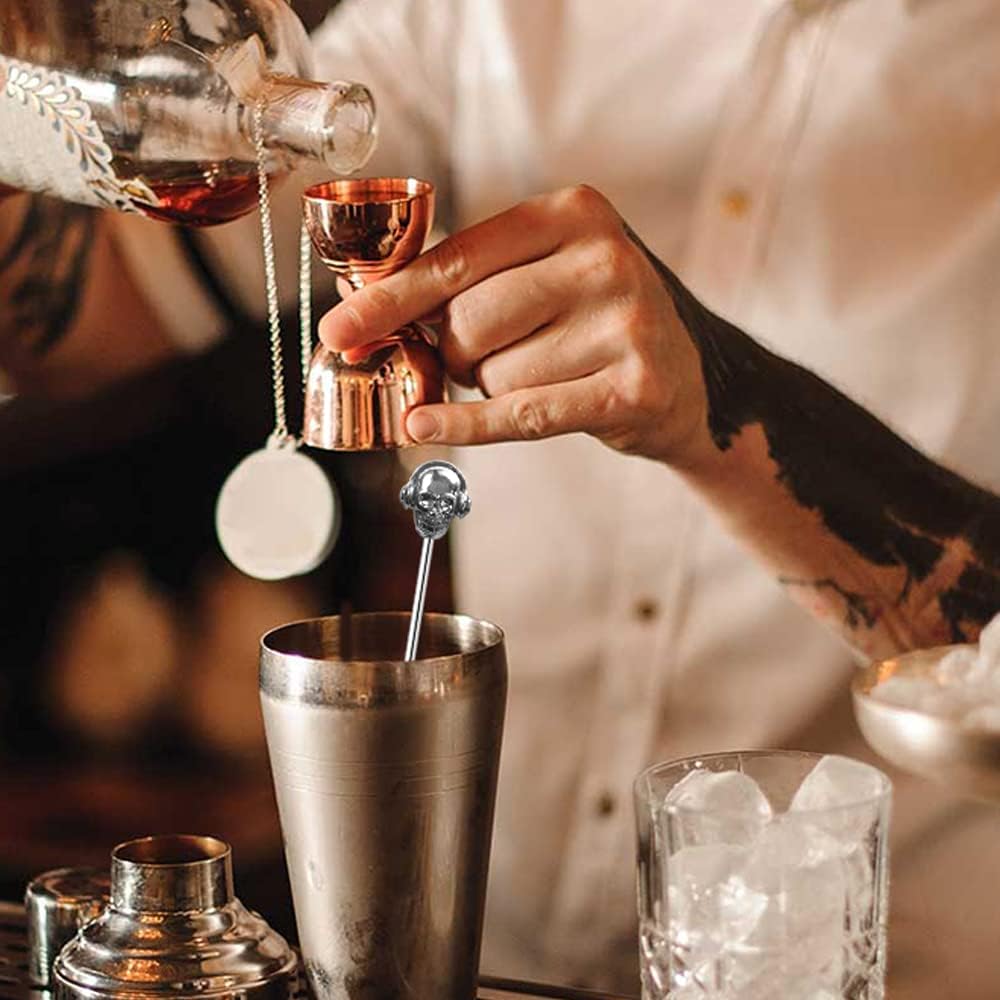 - CREATIVE DESIGN:Swizzle stick with lifelike wearing a high hat skull,one-eyed skull,wearing headphones skull,wearing a casual hat skull,wear glasses skull tops, diverting cocktail accessories impress private cocktail party or coffee gathering.