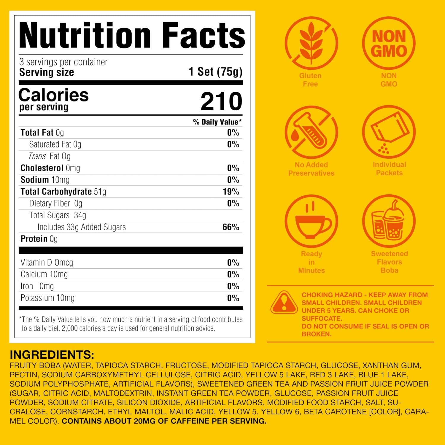 - Flavor : Passionfruit Green Tea with Fruity Boba