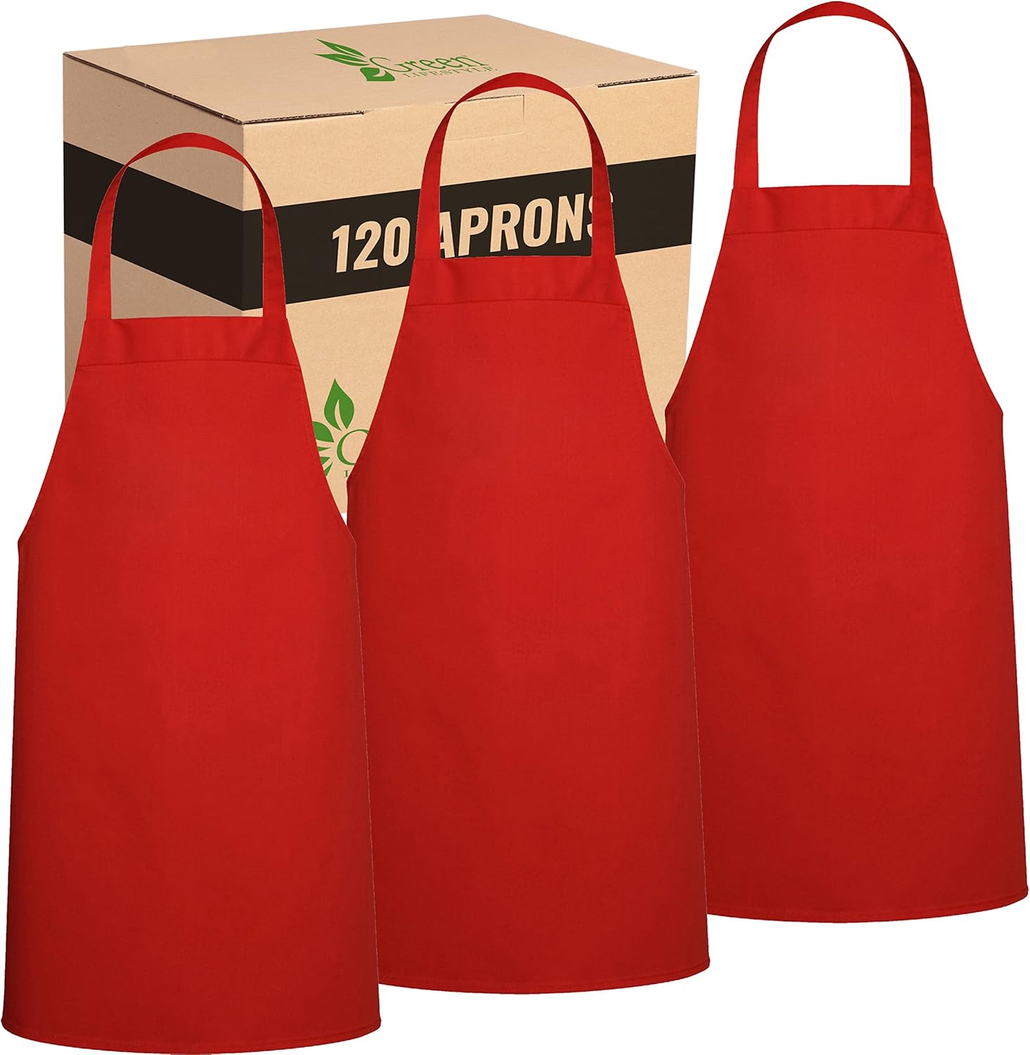 GREEN LIFESTYLE 120 Pack Professional Chef Apron – Grilling Aprons for Men, Waterproof Cooking Apron for BBQ, Work or Restaurant Use, Kitchen Aprons for Women – Red, No Pockets