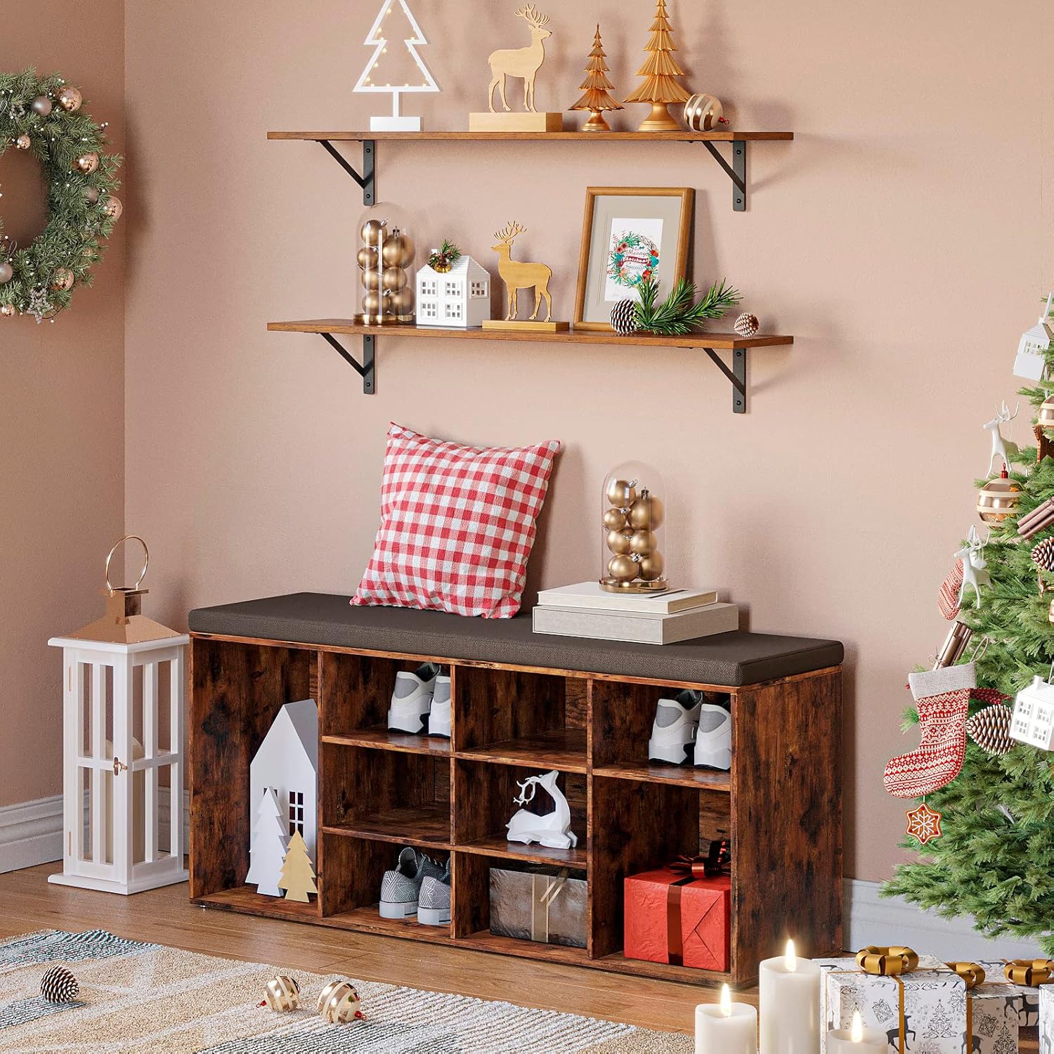 DINZI LVJ Long Wall Shelves, 39.4Inch Wall Mounted Shelves Set of 2, Easy-to-Install, Wall Storage Ledges with Sturdy Metal Brackets for Living Room, Bathroom, Bedroom, Kitchen, Rustic Brown