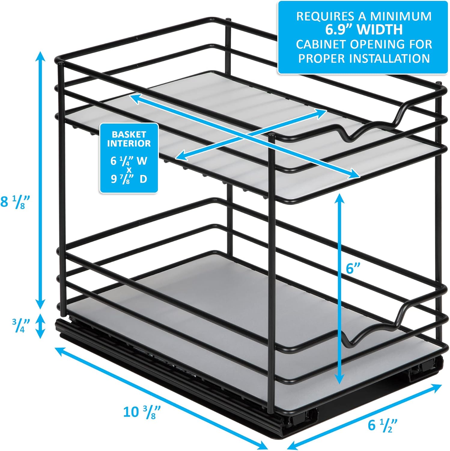 Pull Out Cabinet Organizer for Spices, Cans - Heavy Duty with Lifetime Limited Warranty- Pull Out Spice Rack- Cabinet Pull Out Shelf for Cans,Dishes, Etc, 6-1/2"Wx10-3/8"Dx8-7/8"H, Black
