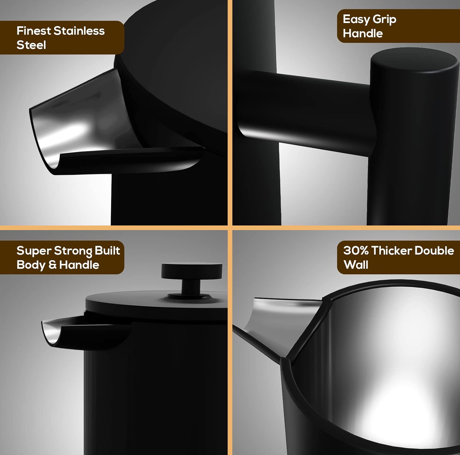 Utopia Kitchen French Press Coffee Maker, Double Wall Insulated Stainless Steel Coffee Press with 4-Level Filtration system, Includes 2 Extra Filters, Rust-Free, Dishwasher Safe (Black, 17 Ounce)