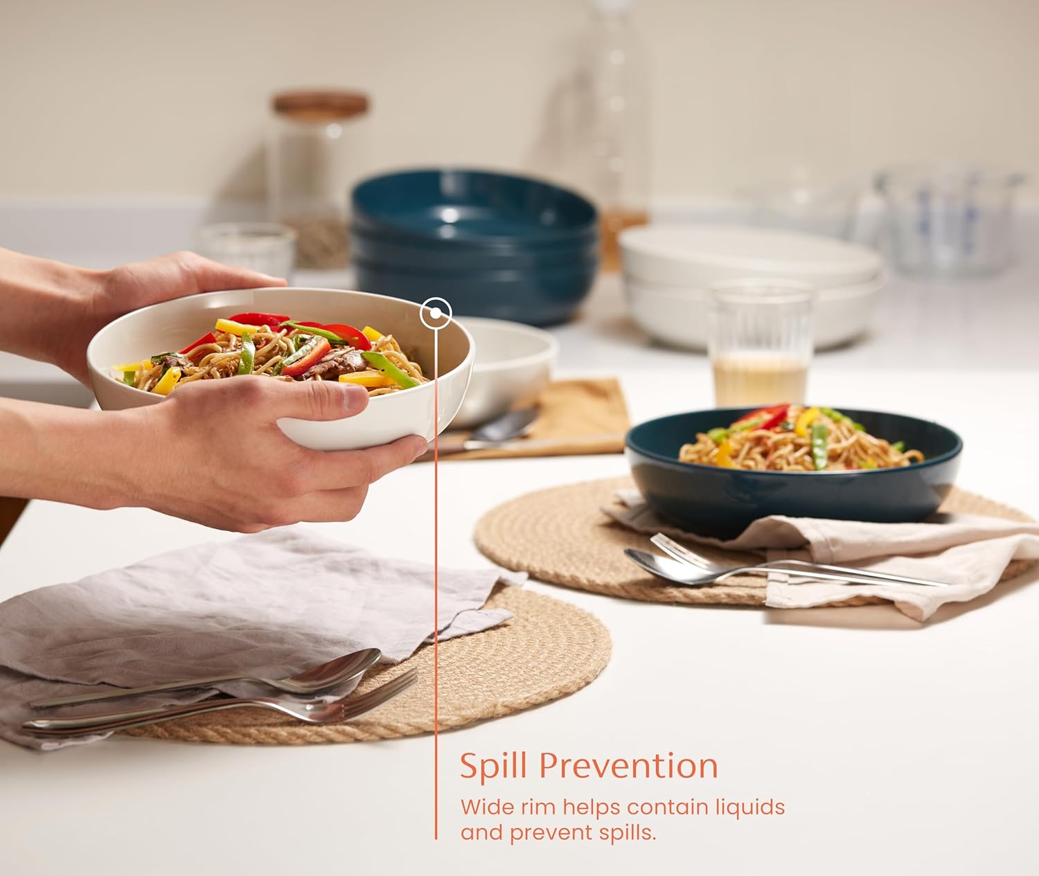 KooK Pasta Bowl, Salad Bowls, Soup, Serving Bowls, Ceramic, Large Capacity, Microwave & Dishwasher Safe, Set of 4, 40 Oz, (Cobalt)
