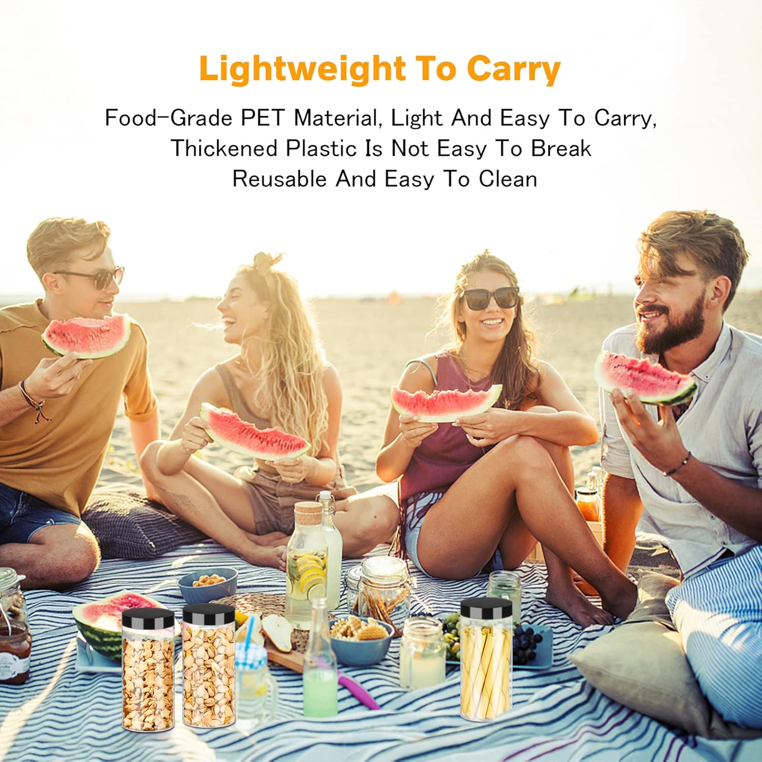 - 【 High-Quality Material】This plastic jars with lids are made of high-quality food-grade PET plastic, sturdy, durable, reusable, transparent and lightweight. You can safely use these empty jars to fill your food without worrying about the effects of the jars, these food jars will meet your needs for your food storage, just put your favourite food in them. NOT DISHWASHER SAFE.