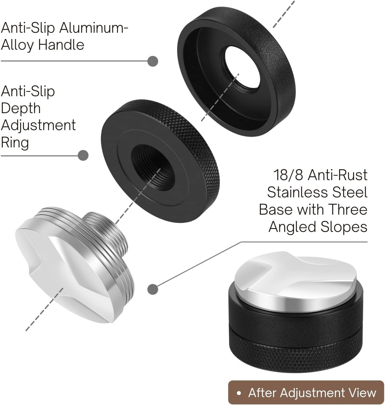 - Universally Compatible - Expertly designed for 58mm portafilters, this espresso leveler 58mm tool is suitable for a wide array of espresso machines, ensuring even distribution of coffee grounds