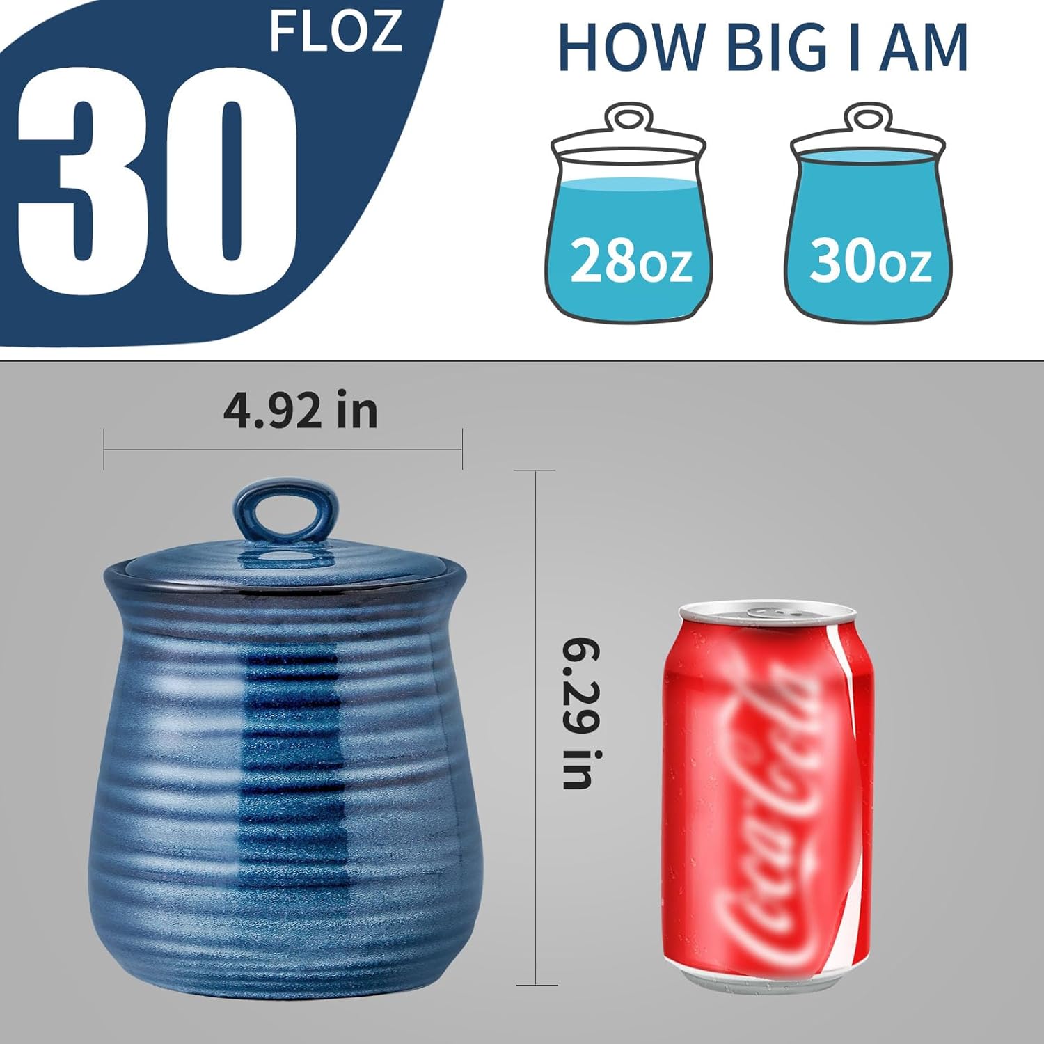 Hasense Ceramic Food Storage Jar, Coffee Canister with Lid, Cookie Candy Jar for Kitchen, Serving for Dog Treat Sugar Loose Tea Flour Coffee Beans Rice Snack Storage 30 FL OZ (Blue)
